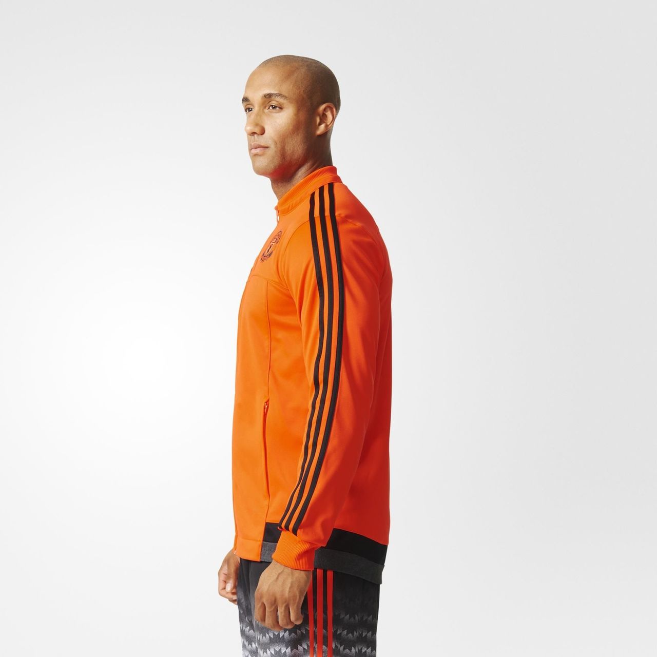 This is the adidas 15/16 Manchester United FC Anthem Jacket. With a full zip, this top features their team badge on left chest and a vertical pocket on the right chest. Finished with a Manchester United FC icon on the back neck.