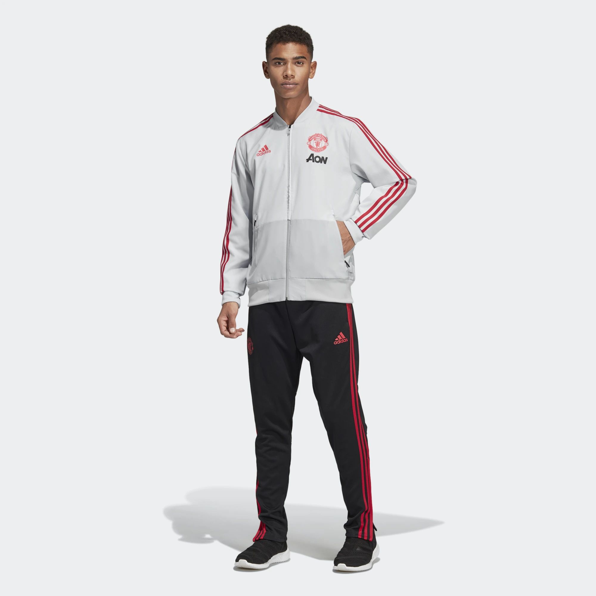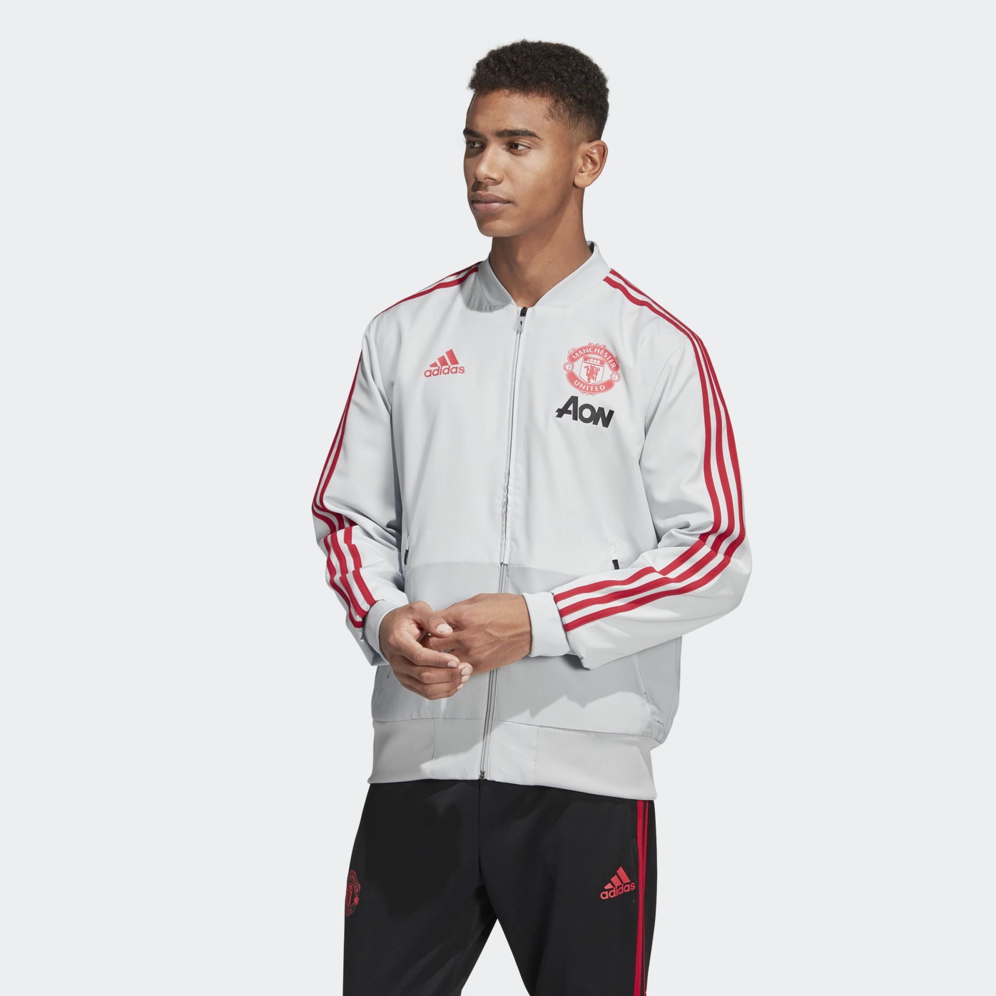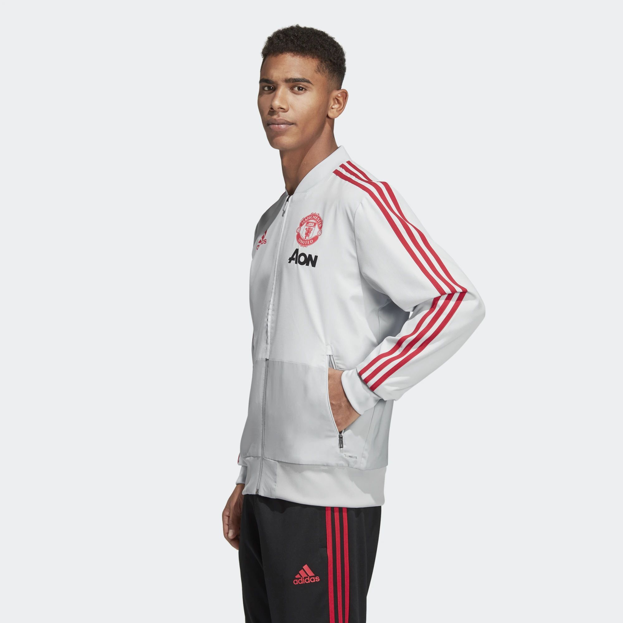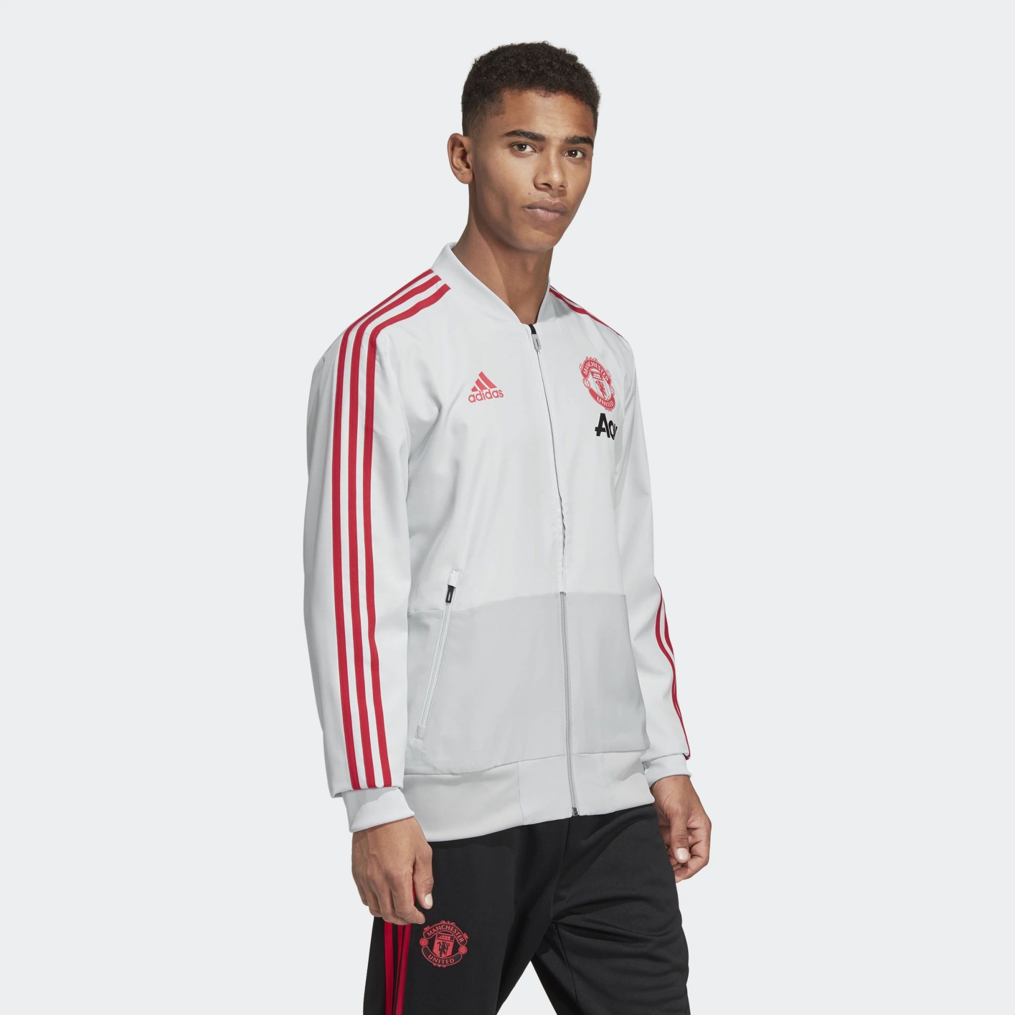 Adidas Manchester United Presentation Jacket - Clear Grey / Blaze Red