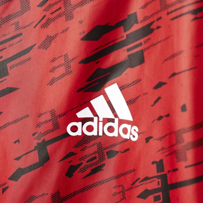 Stay warm and limber on the sidelines like the club from Old Trafford in this Adidas MUFC Windbreaker.