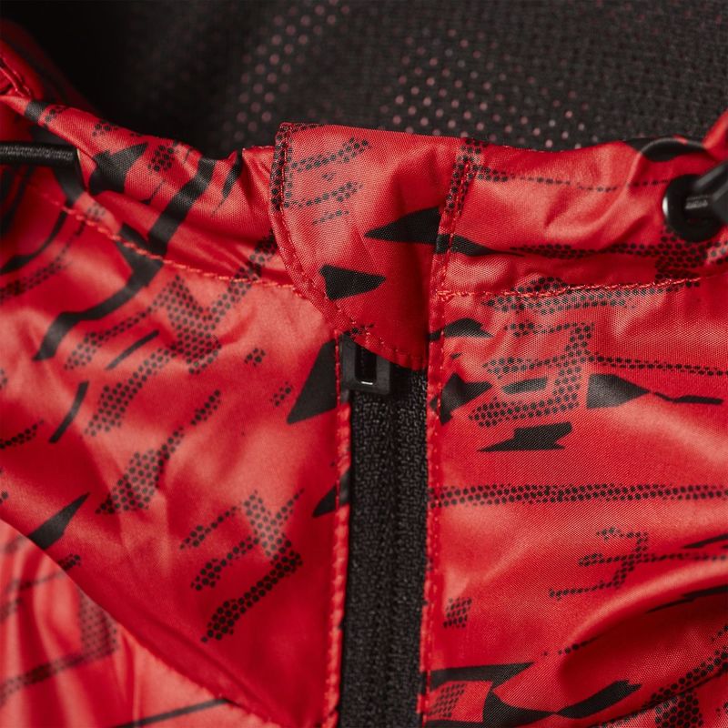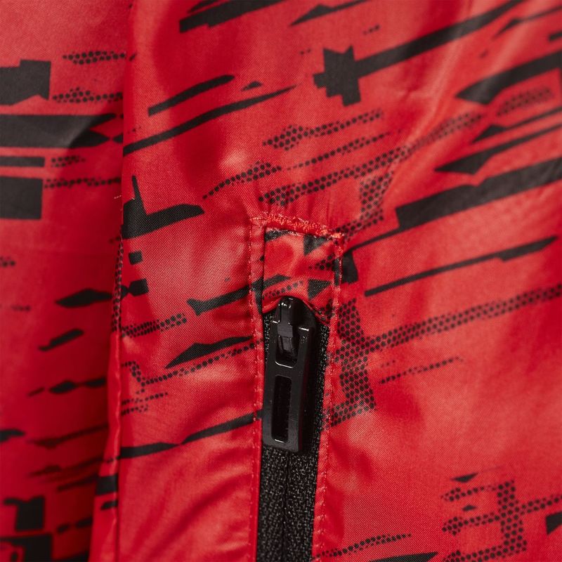 Built with lightweight polyester, the jacket's drawcord hood, elastic cuffs and droptail hem provide coverage from the weather. It's finished with an allover graphic and a Manchester United crest.