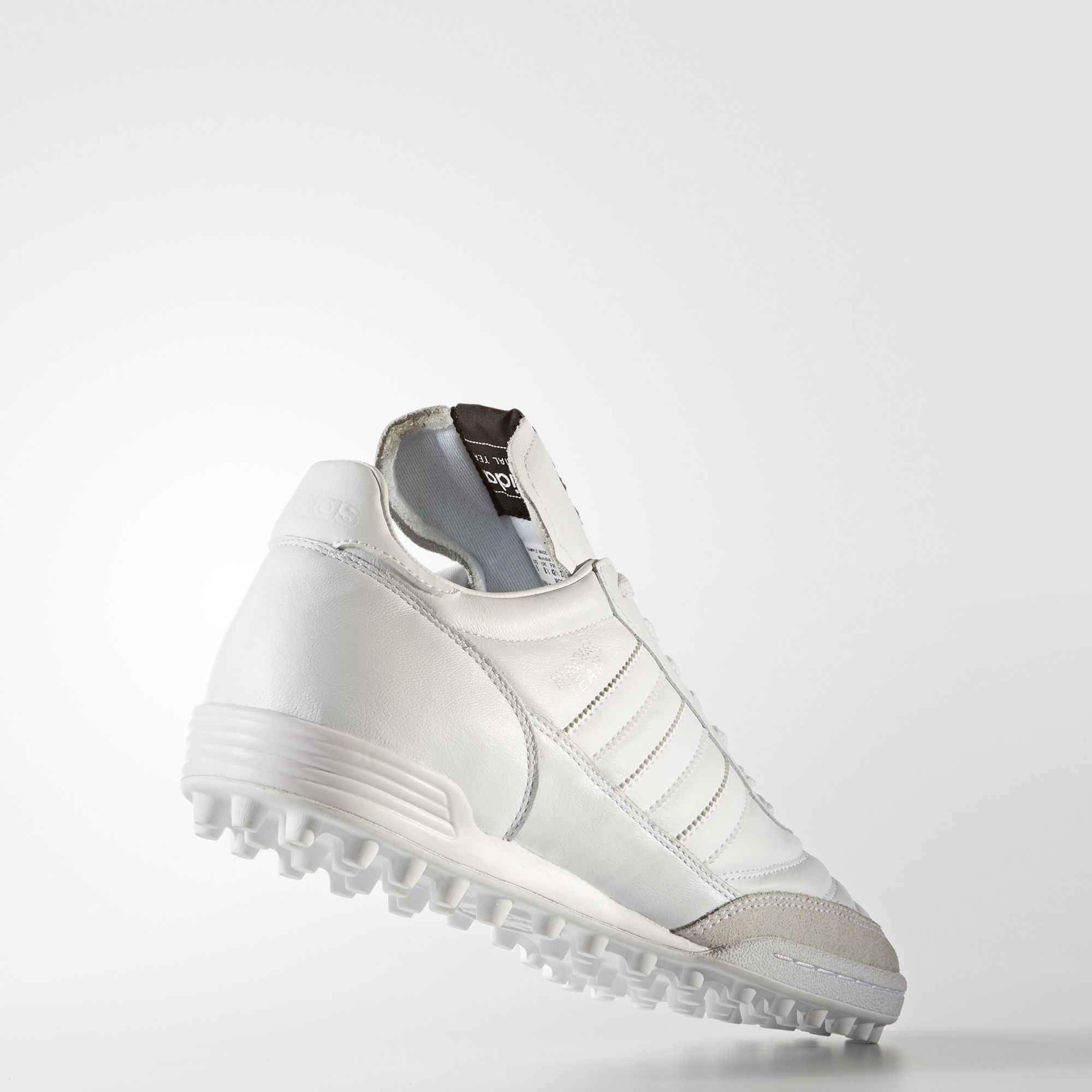 The choice of football players at all levels for the past 20 years, these Adidas Mundial Team Boots have a split-suede leather upper. An EVA midsole and a TRAXION™ outsole are designed for play on artificial turf.