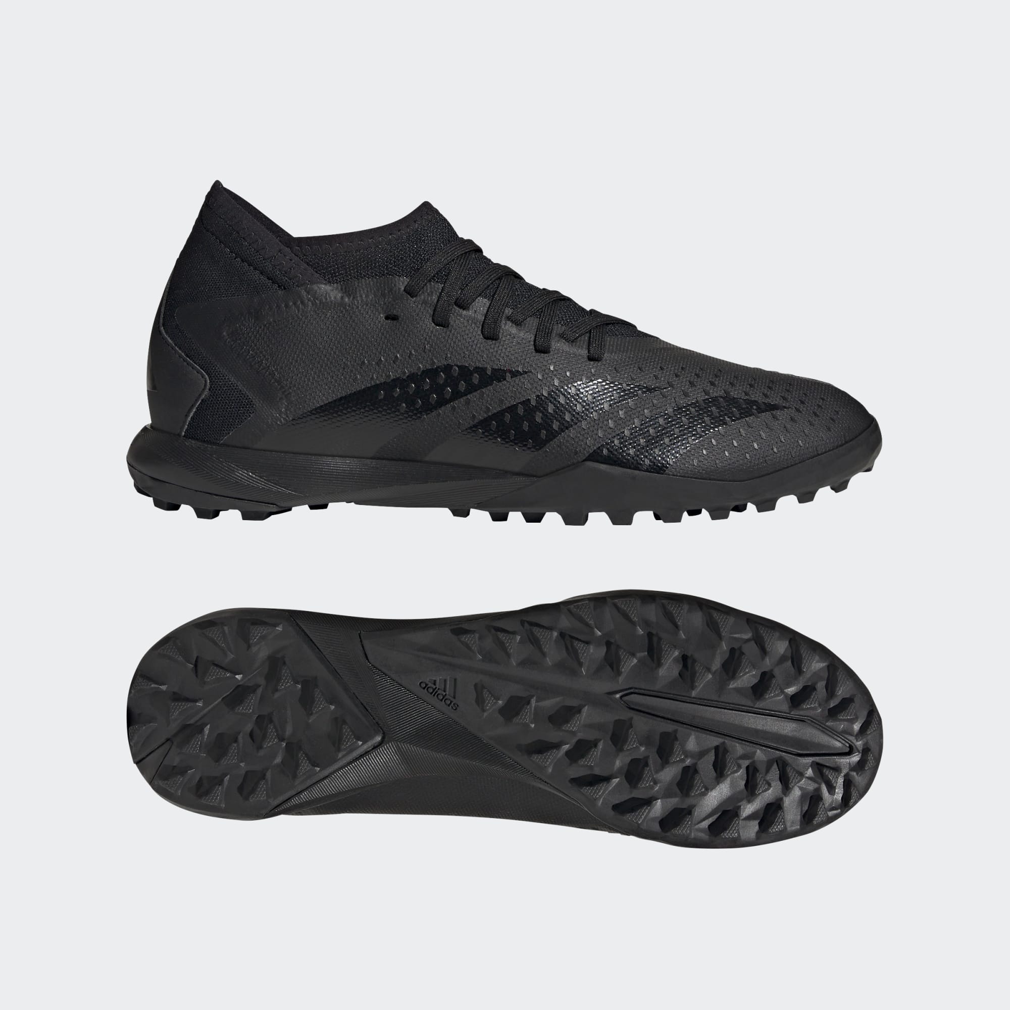 Score with precision in these Adidas Predator Accuracy.3 Turf Boots in Core Black/Core Black/Cloud White.