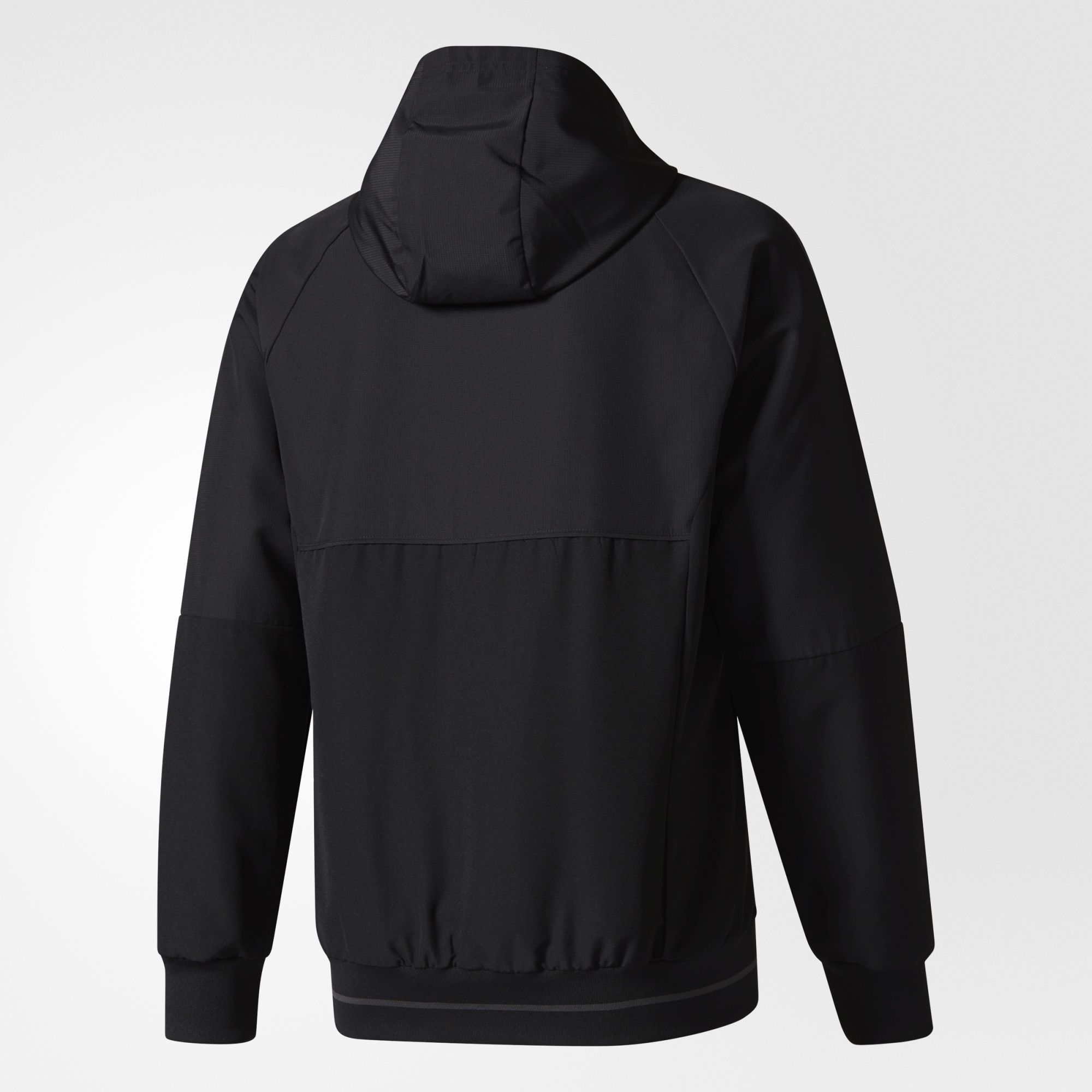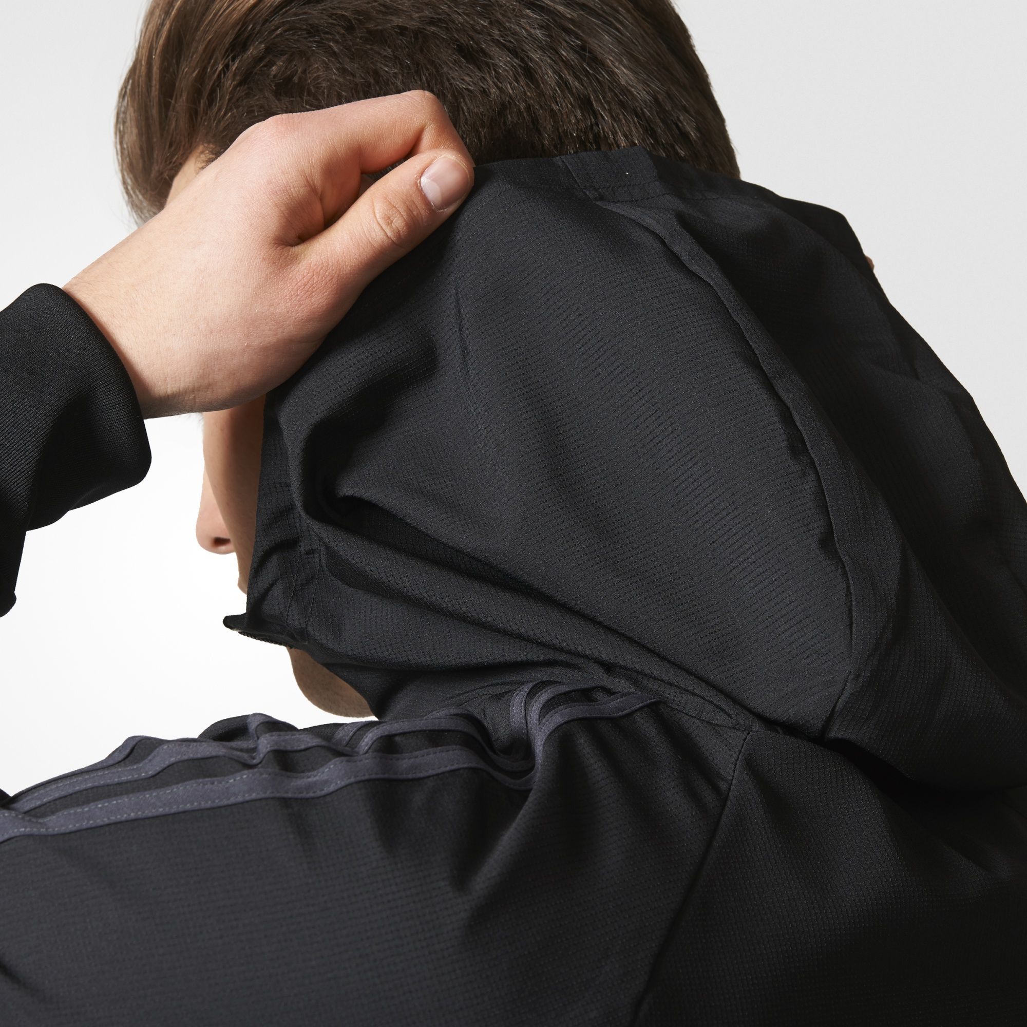 Made for a slim fit, its minimal colour scheme extends from its hood down to its ribbed cuffs and hem.
