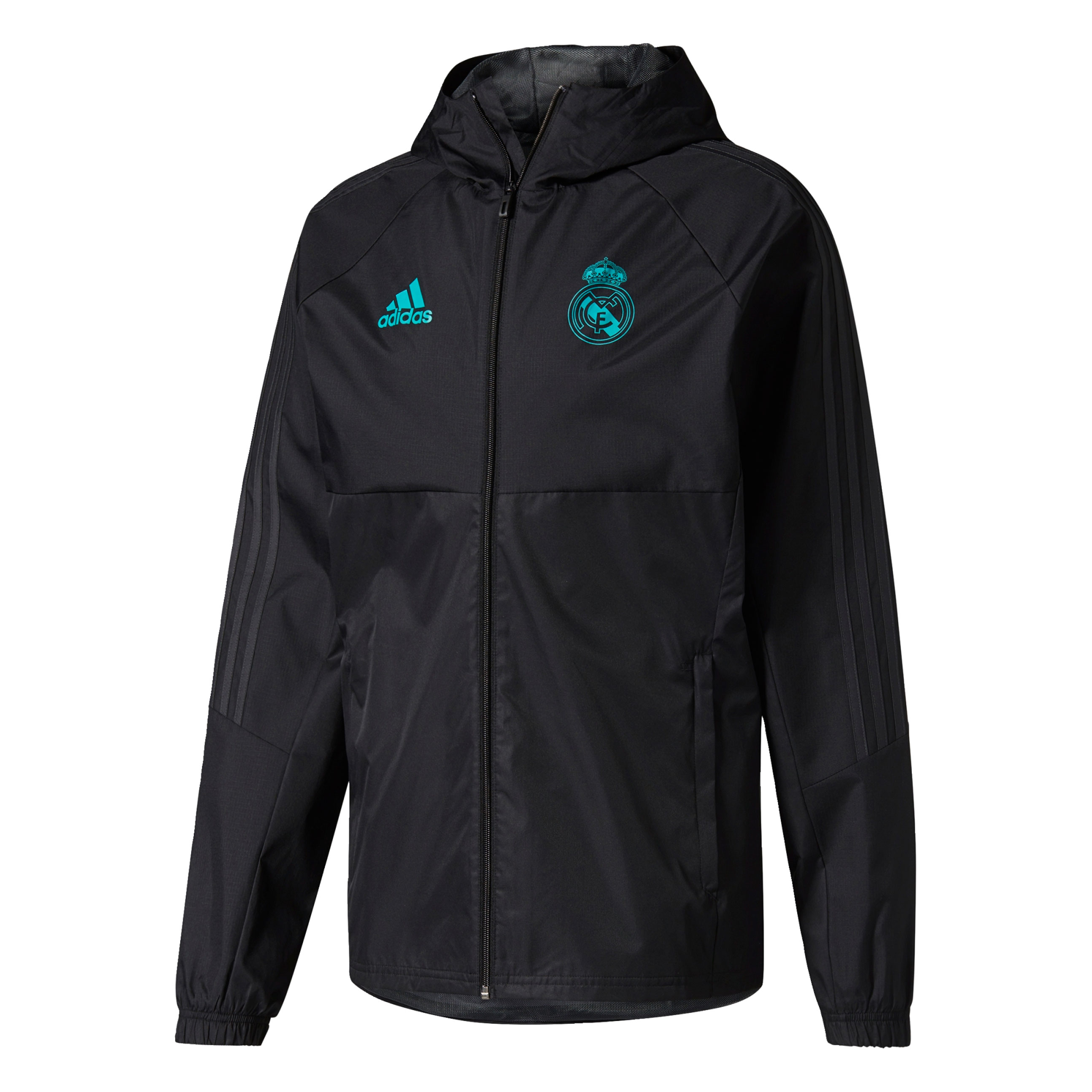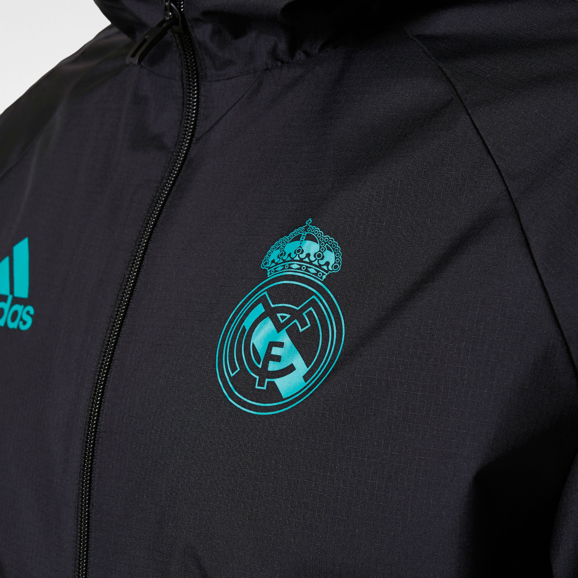 Featuring the Real Madrid crest printed on the chest, the Adidas 17/18 Real Madrid Training Rain Jacket highlights club support while keeping you protected.