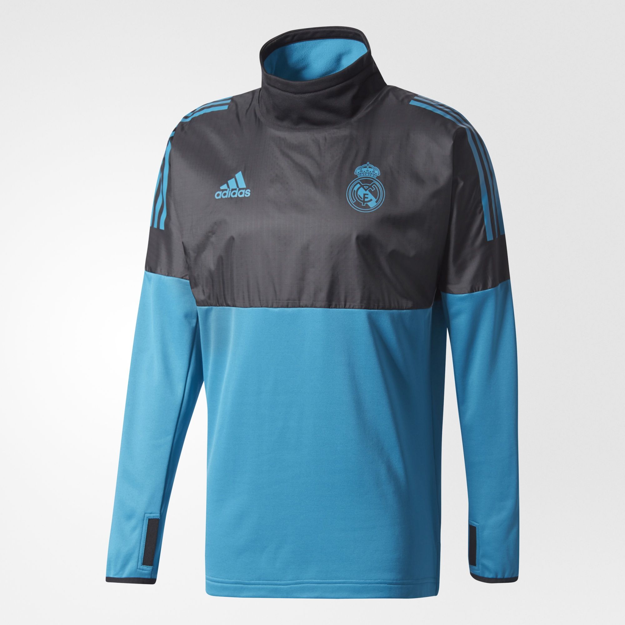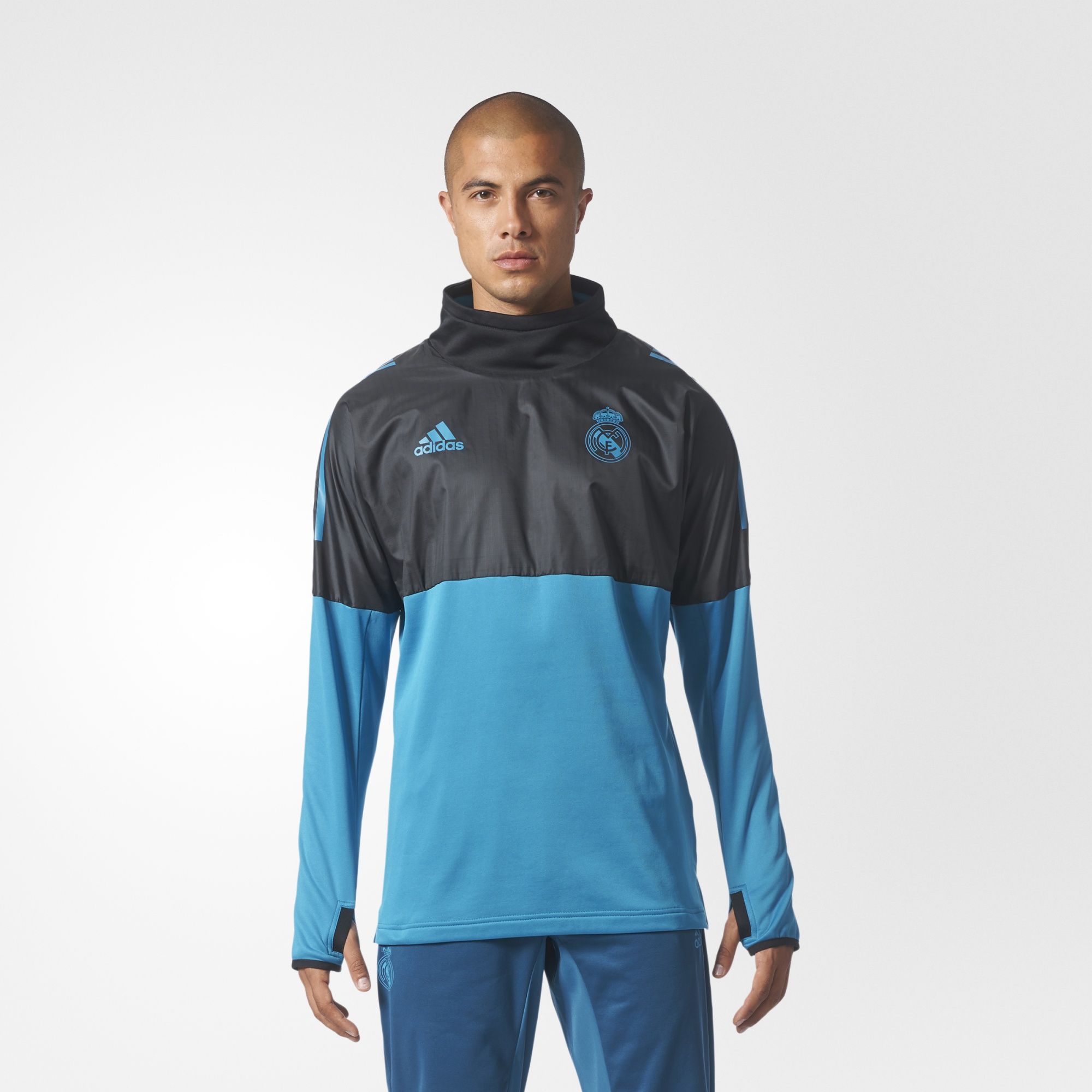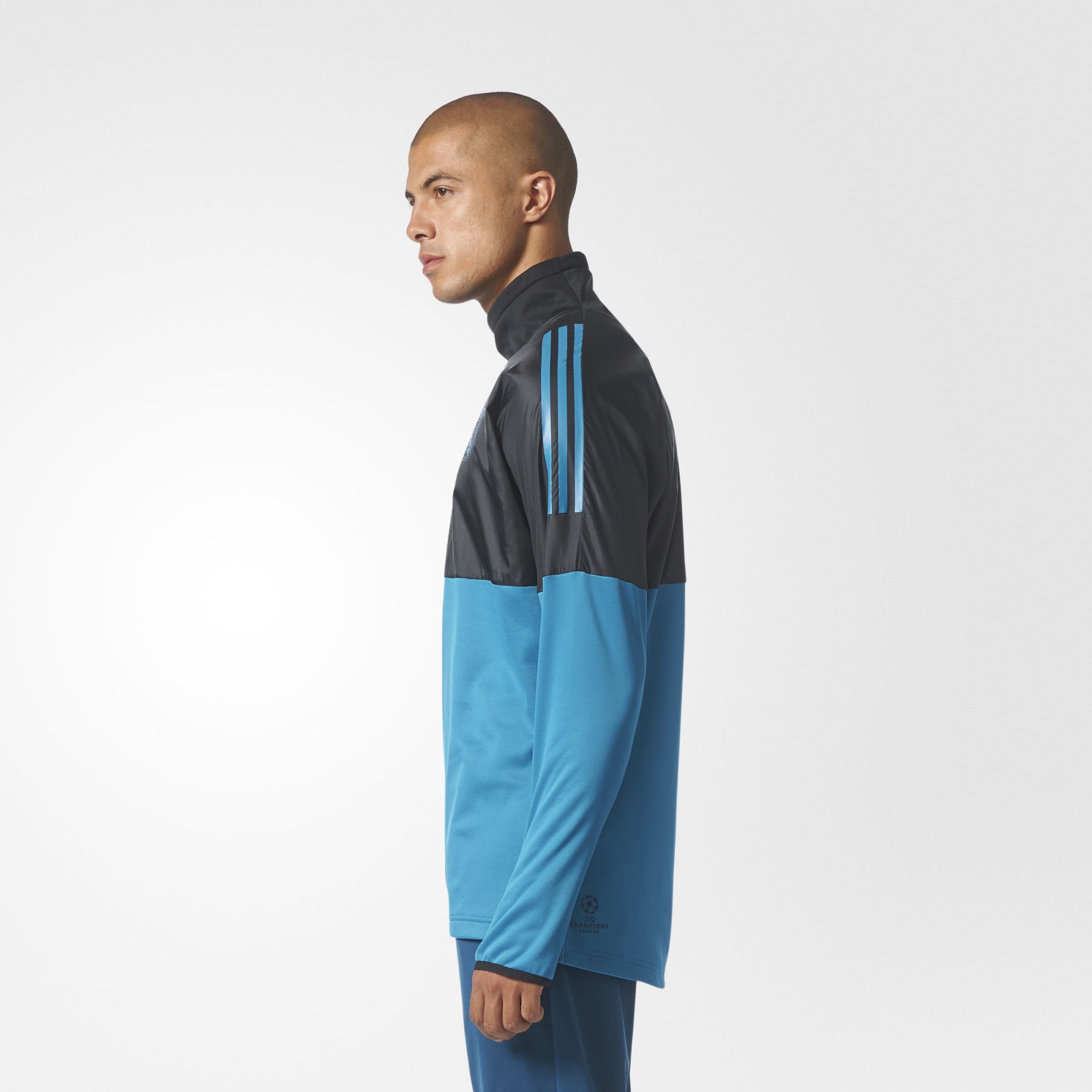 This Adidas Real Madrid UCL Hybrid Top helps keep out the cold.