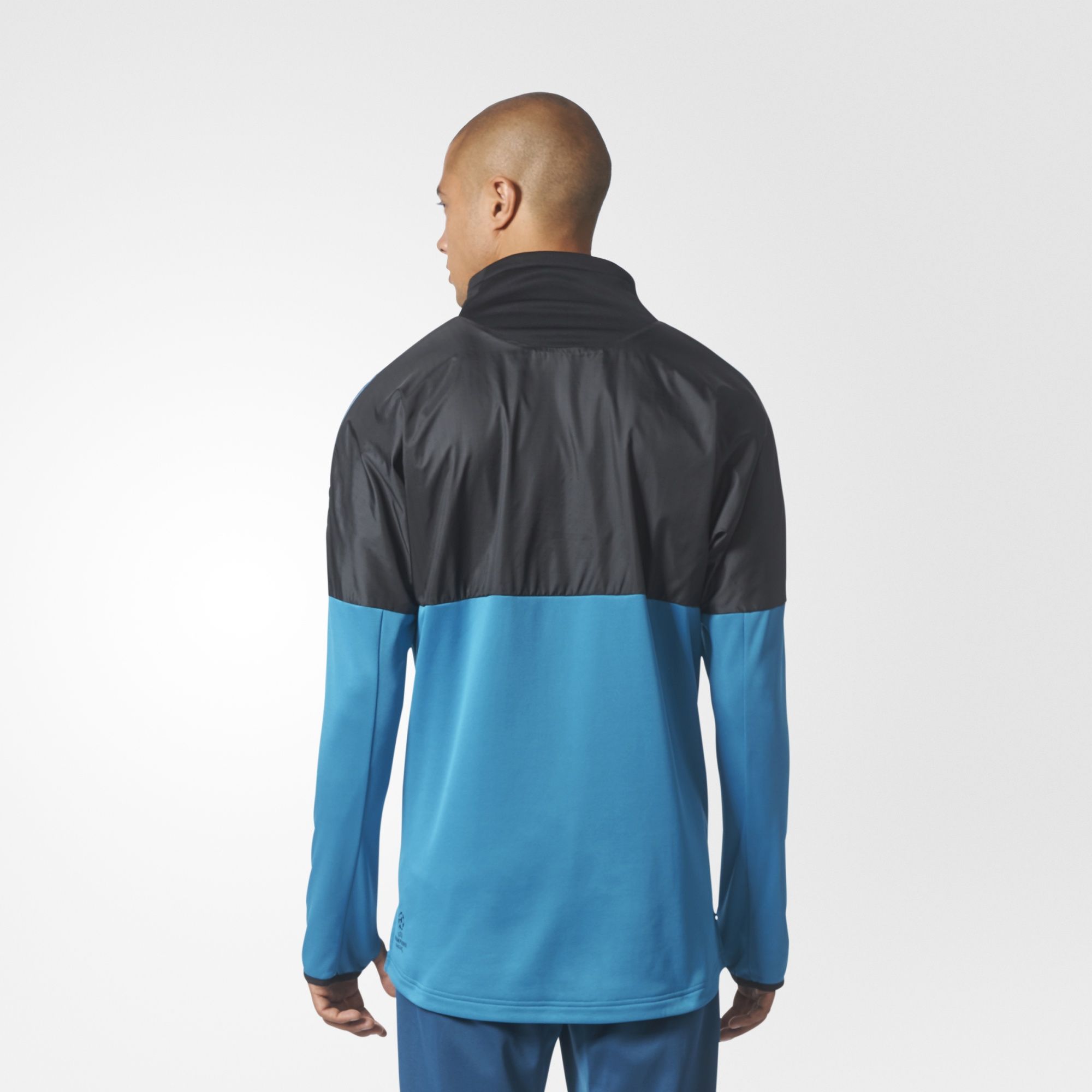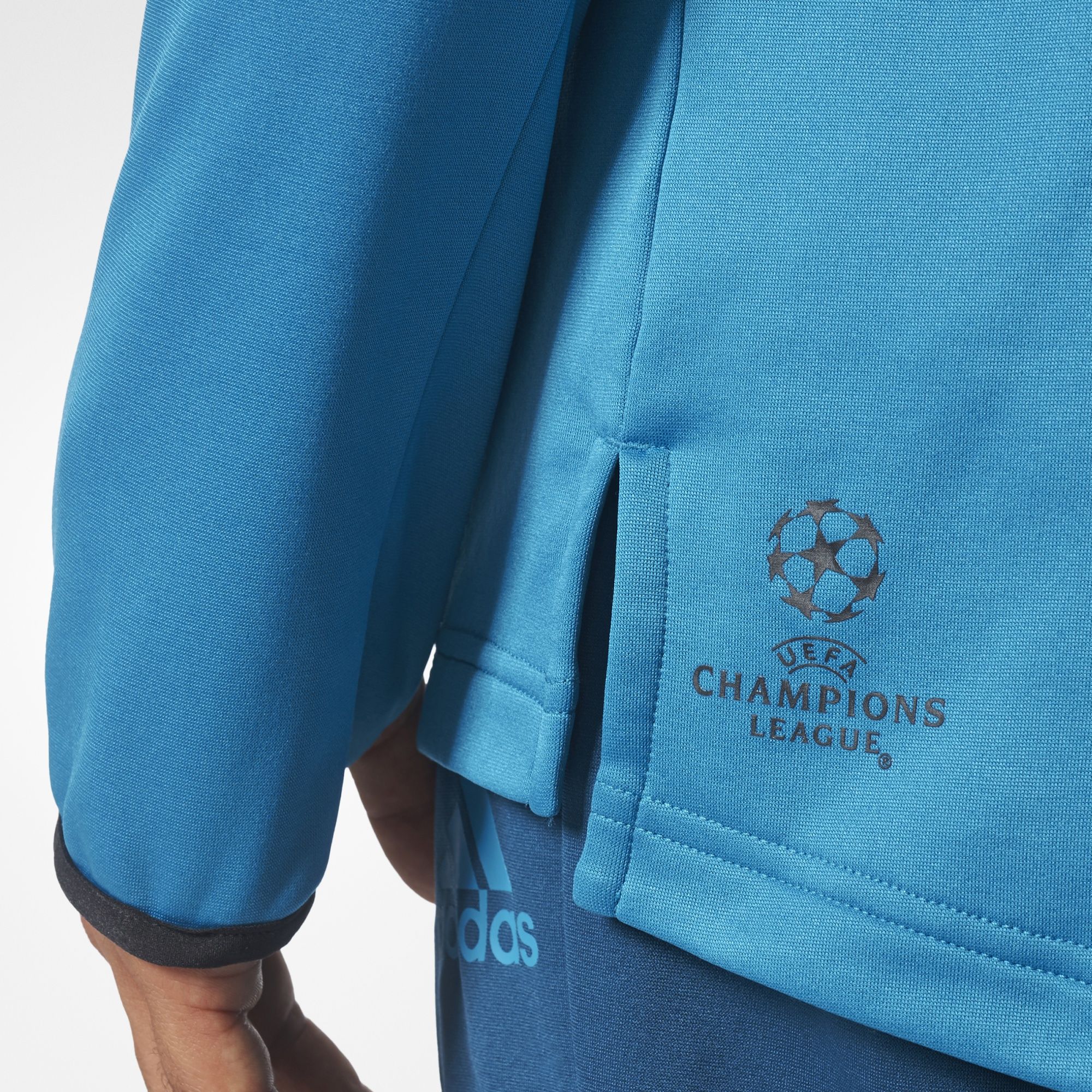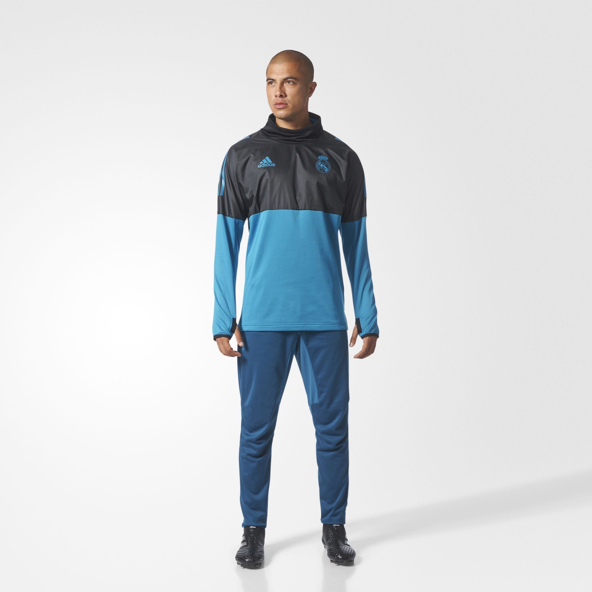 This Adidas Real Madrid UCL Hybrid Top helps keep out the cold.