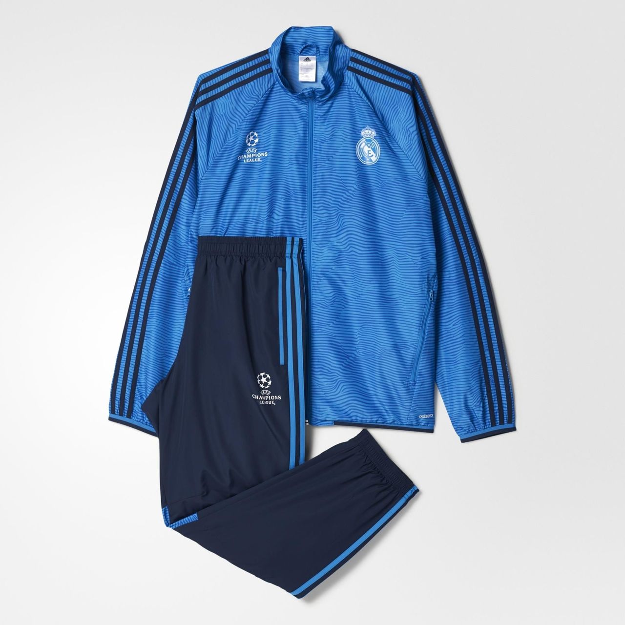You can cheer on Los Blancos in this adidas Real Madrid UCL Presentation Suit. Made of sweat-wicking climalite® fabric to keep you dry and comfortable. Showing off the team badge on the chest, the jacket packs away for easy carrying. The pants feature a team badge at the hip and are finished with convenient ankle zips.