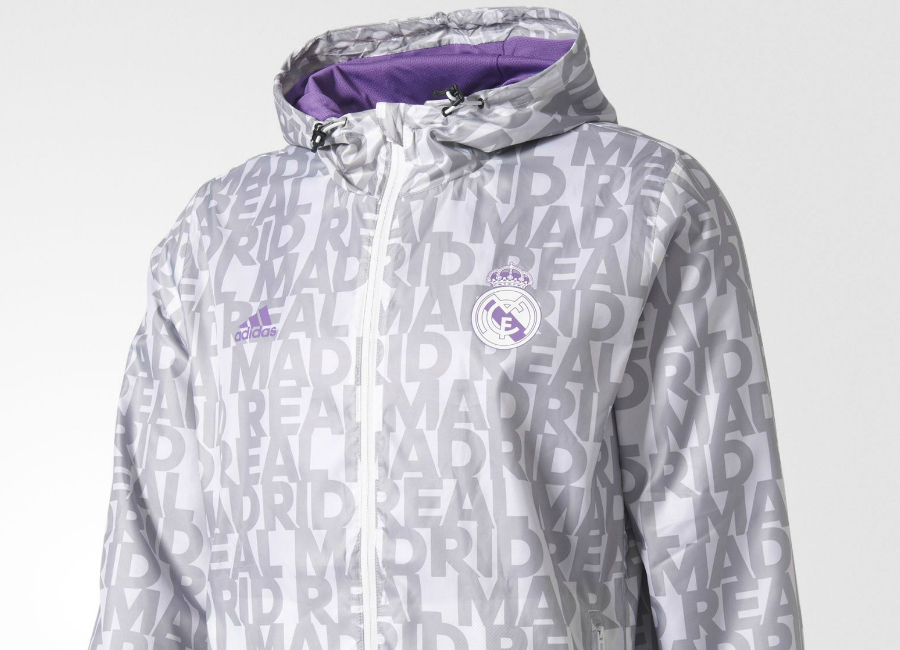 Featuring an adjustable hood, this full-zip jacket has elasticised cuffs and a droptail hem for protection from gusty winds. It's finished with a Real Madrid crest on the left chest.