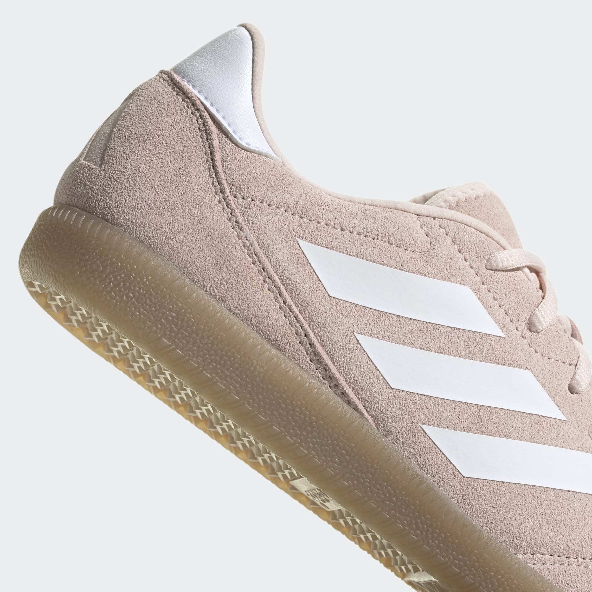 A super-comfortable lifestyle shoe with the soul of a football boot. Take your beautiful game beyond the touchline in these adidas Sala Court trainers in Wonder Quartz/Cloud White/Cloud White.