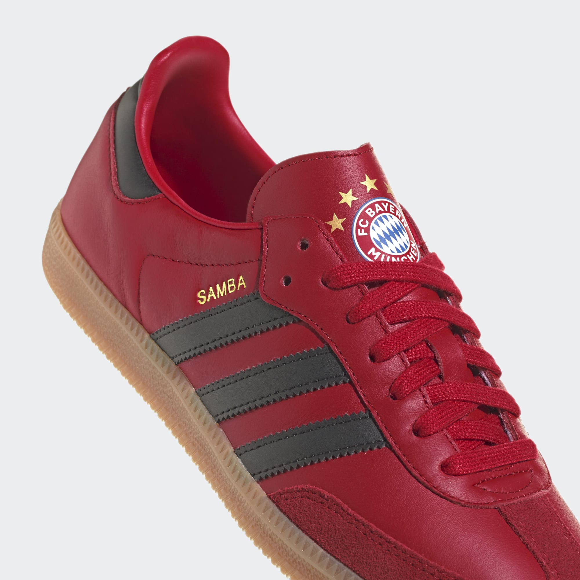 Watching your football club win ten consecutive titles adds a dash of confidence to your stride. Dressed in FC Bayern's traditional home colours and flashing a club badge on the tongue, these adidas Samba FC Bayern Shoes show who you follow.