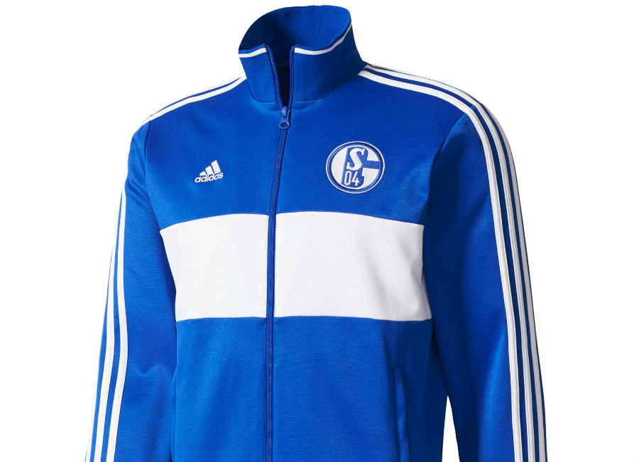 Combining classic adidas style with the bold blue colours and embroidered crest of FC Schalke 04.