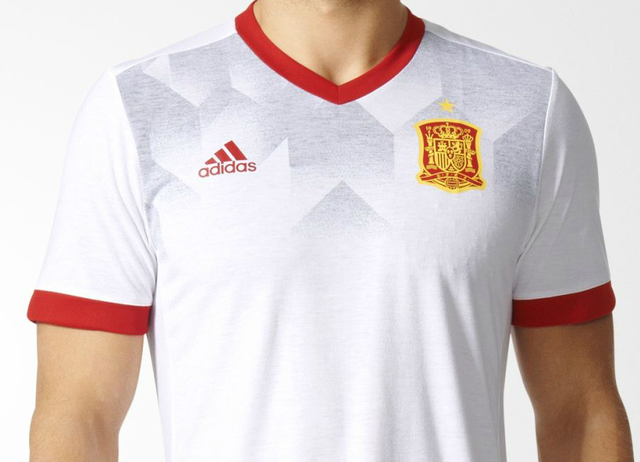 Styled after la Furia Roja's warm-up kit, it has a Spanish Football Federation badge over the heart.