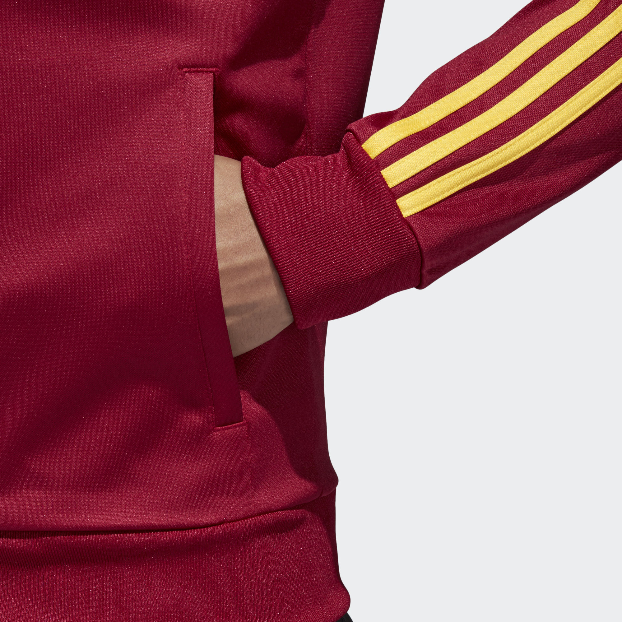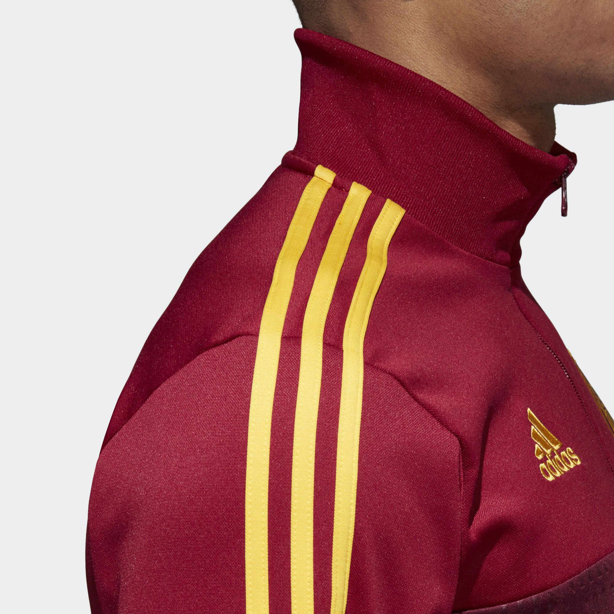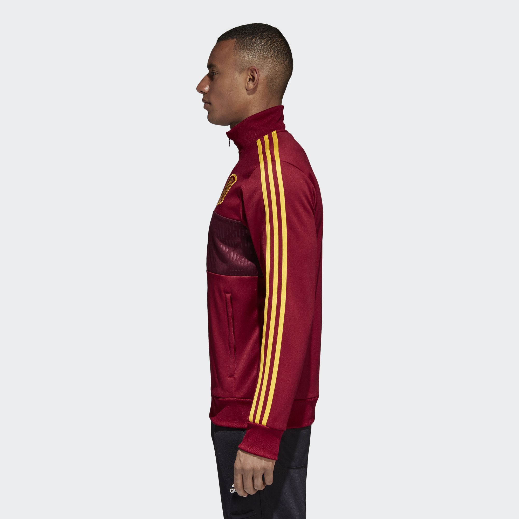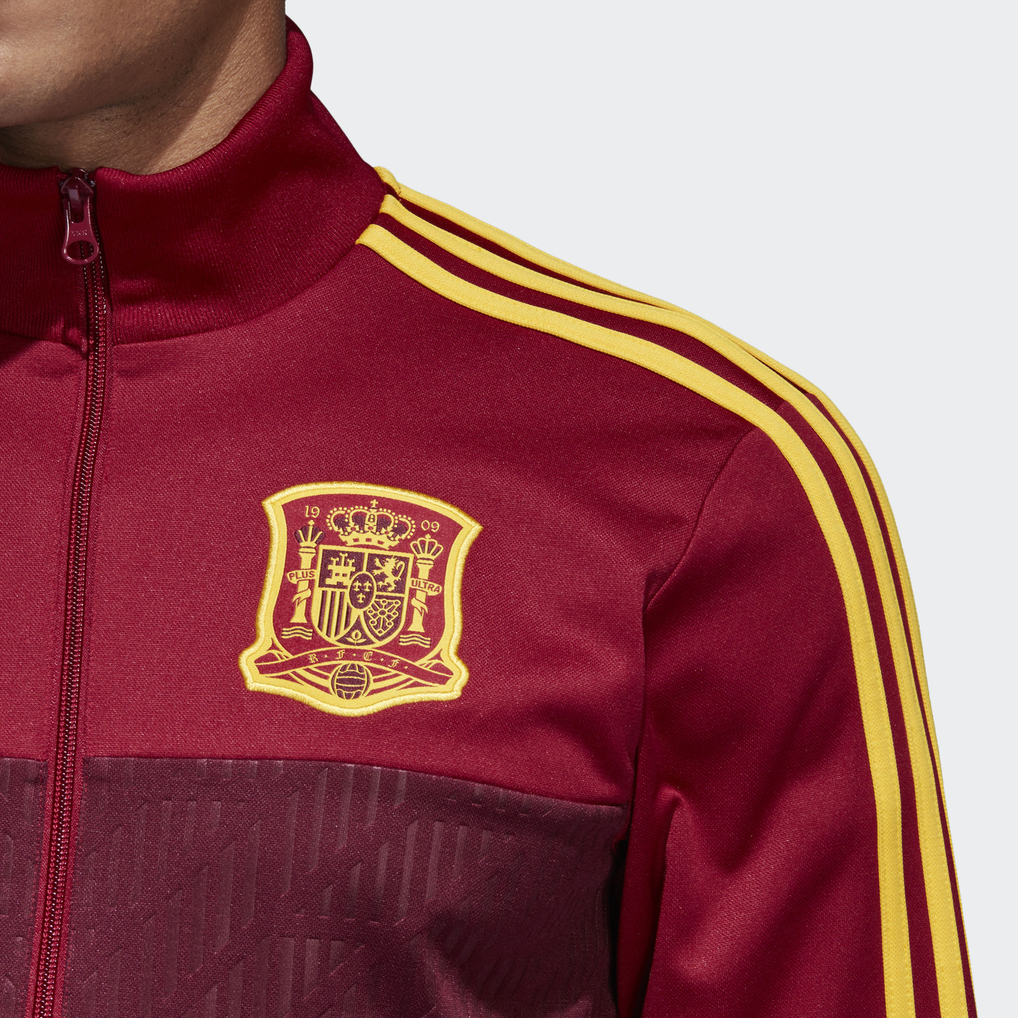 This Adidas Spain 3-stripes Track Jacket with a graphic front panel, back neck tape and zip pockets carries the Furia Roja crest with pride and is flanked by synonymous adidas branding, including the iconic Badge of Sport.