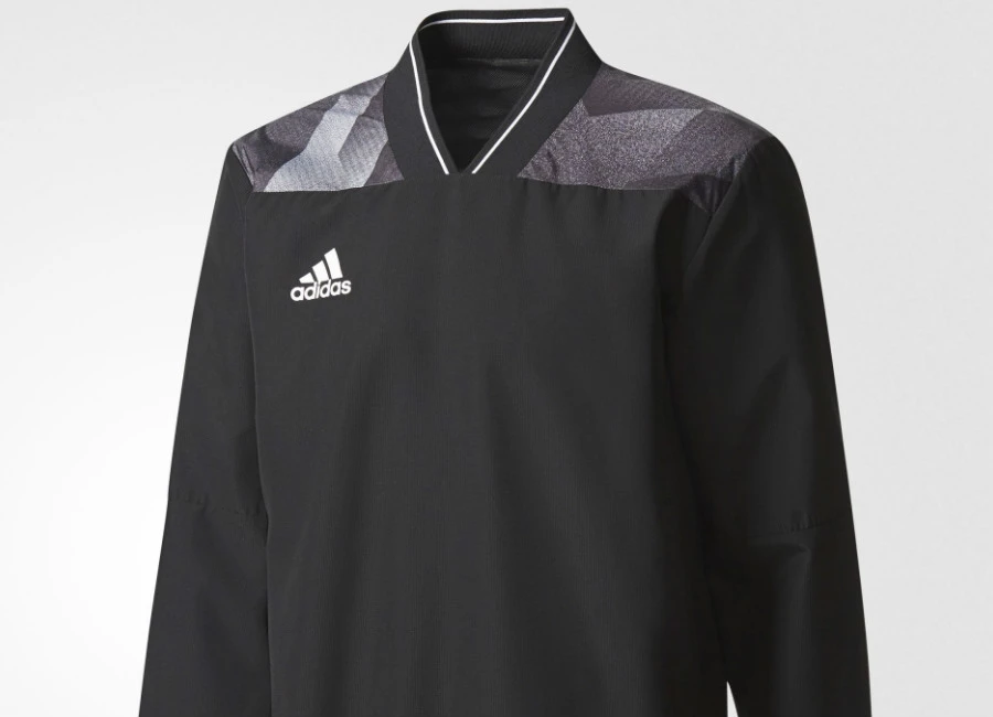 Made from breathable, water-repellent fabric, this Adidas Tango Top features a ribbed V-neck and a Tango logo above the hem. A dynamic print covers the shoulders and upper back.