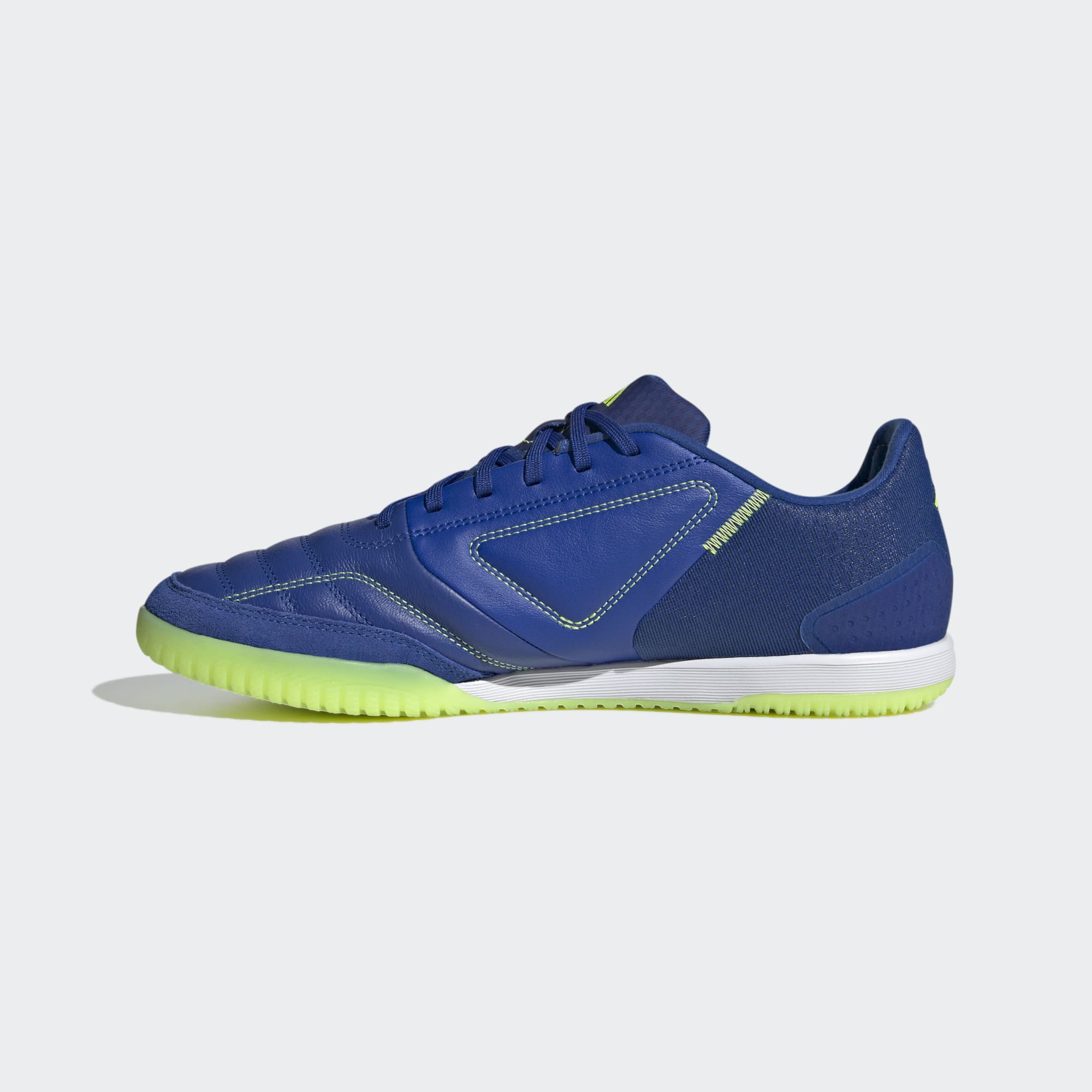 These adidas Top Sala Competition IN shoes in Royal Blue/Team Solar Yellow 2/Cloud White are optimized for indoor futsal play.