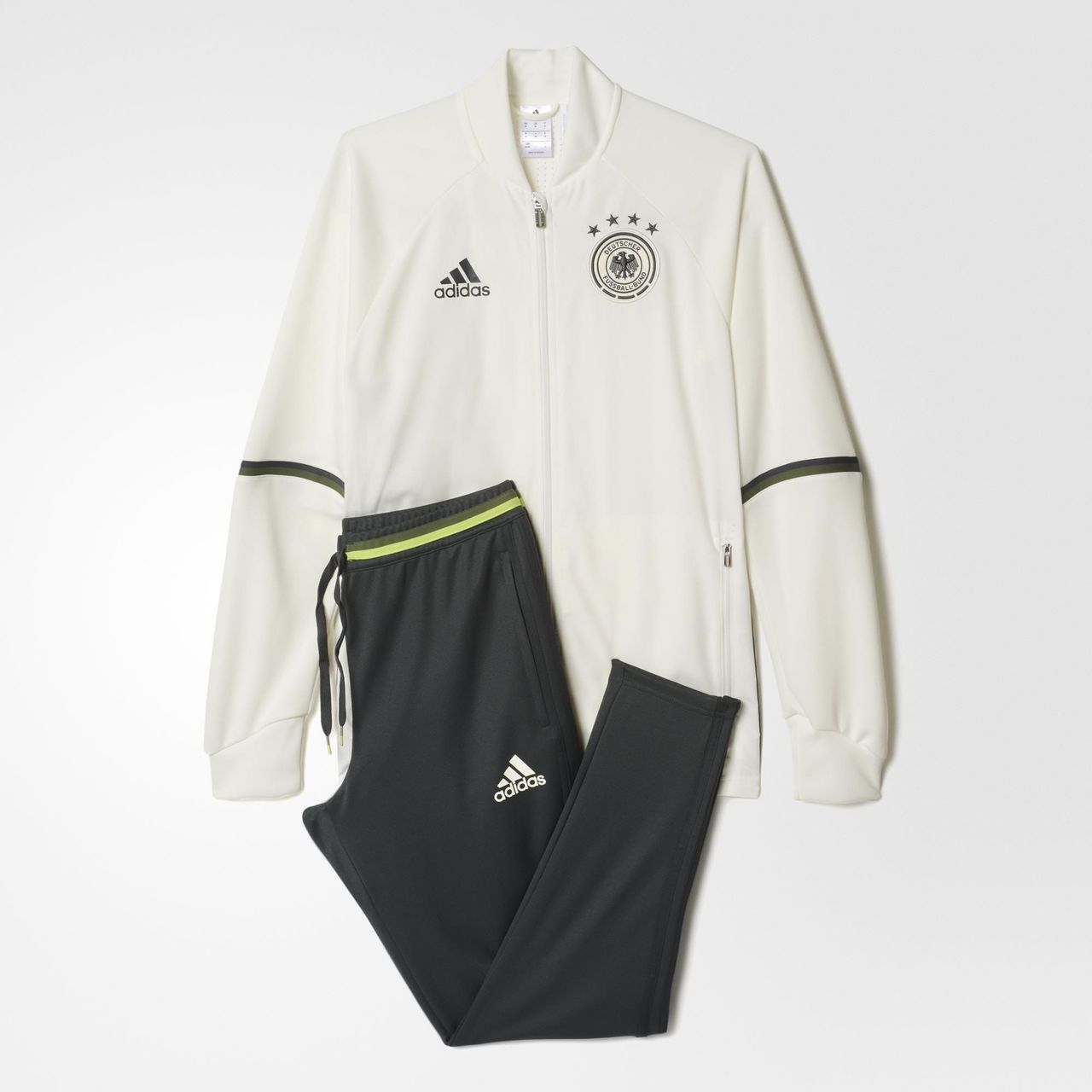As die Mannschaft gear up to challenge their rivals at UEFA EURO 2016, they wear this adidas football training suit. Ventilated climacool helps keep you cool and dry through all of the action. The matching pants and jacket are finished with the official Deutscher Fussball Bund woven badge. Ankle zips on the pants make for easy on and off.