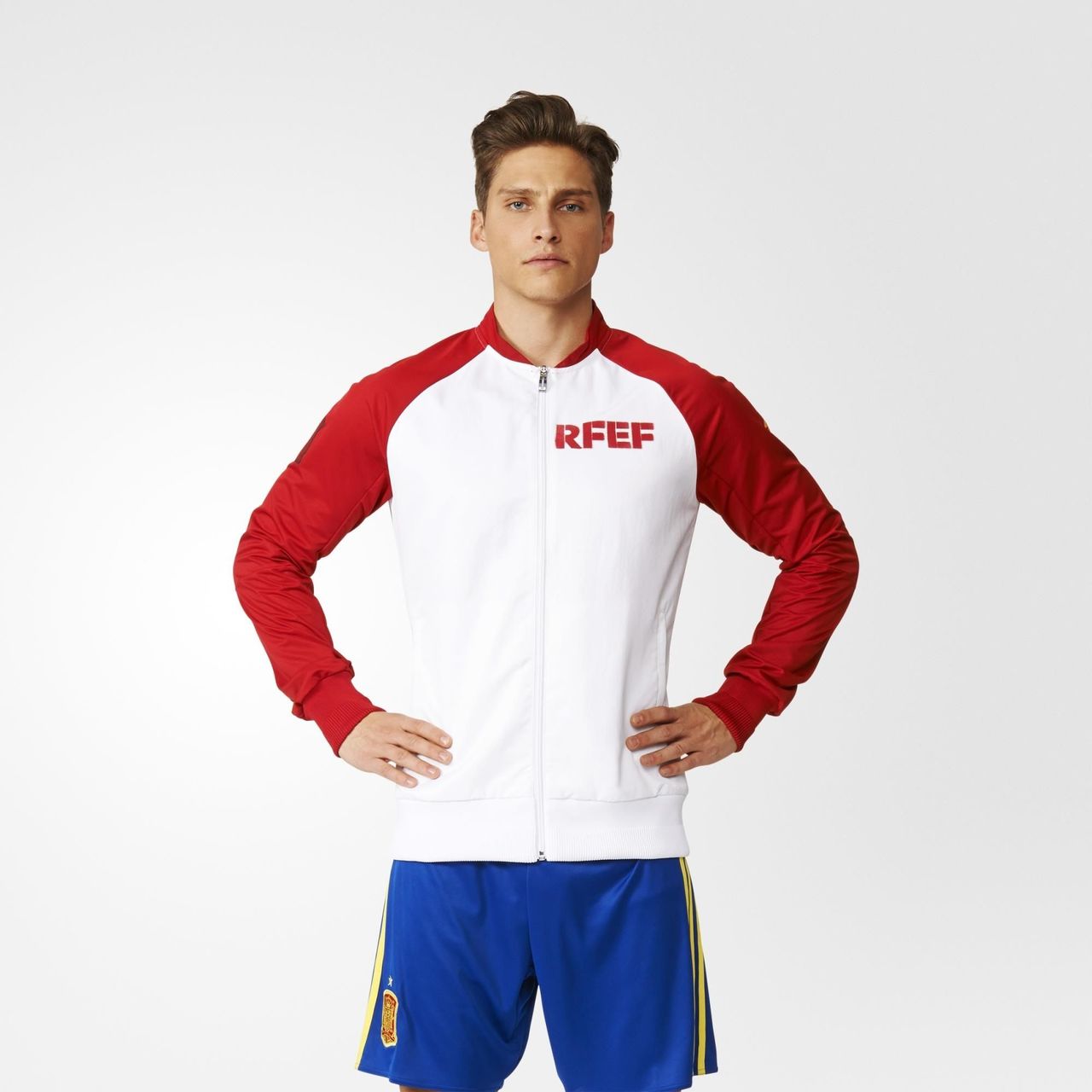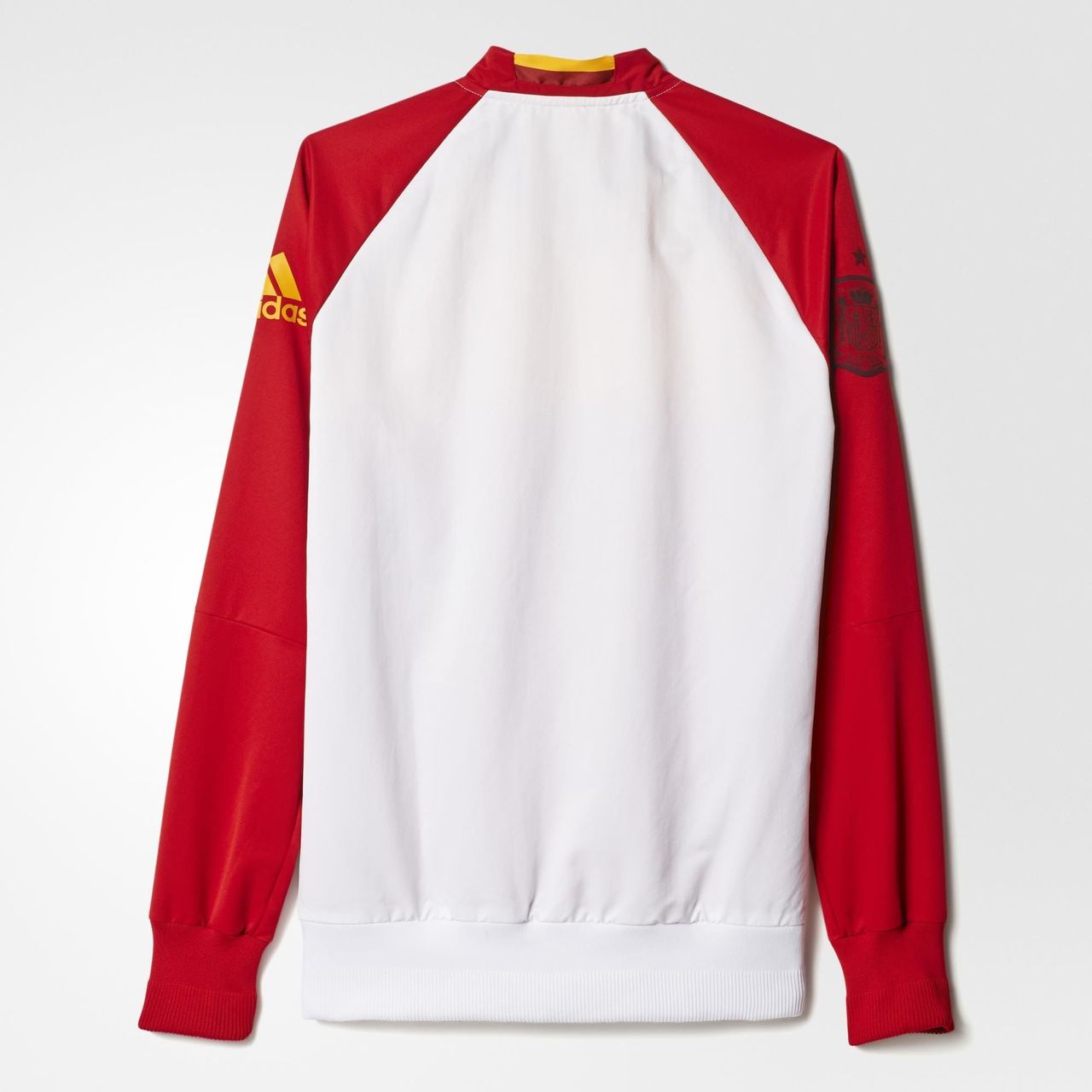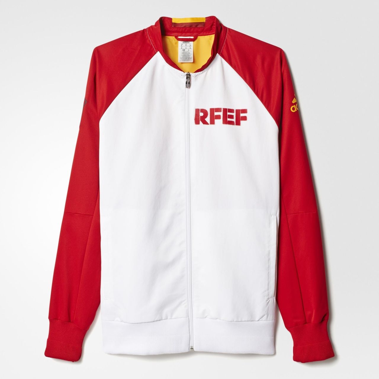 La Roja's tactical precision has earned them a place in football history. Wear the team colours and share the energy of UEFA EURO 2016™ in this adidas football jacket. This full-zip jacket is worn by Spain's players as they enter the pitch in France. It features a Spanish Football Federation detail printed on the chest and 100% recycled content.