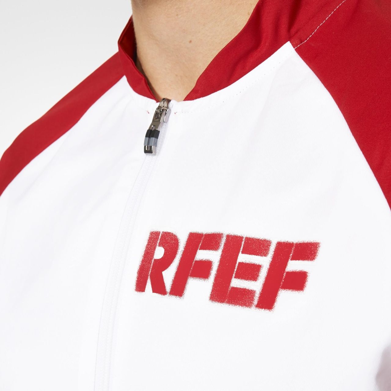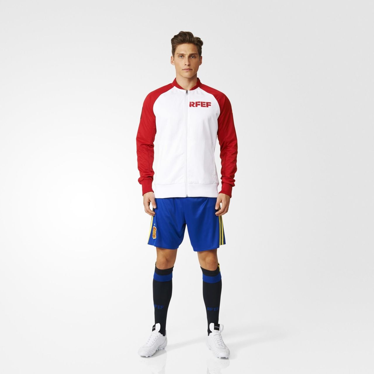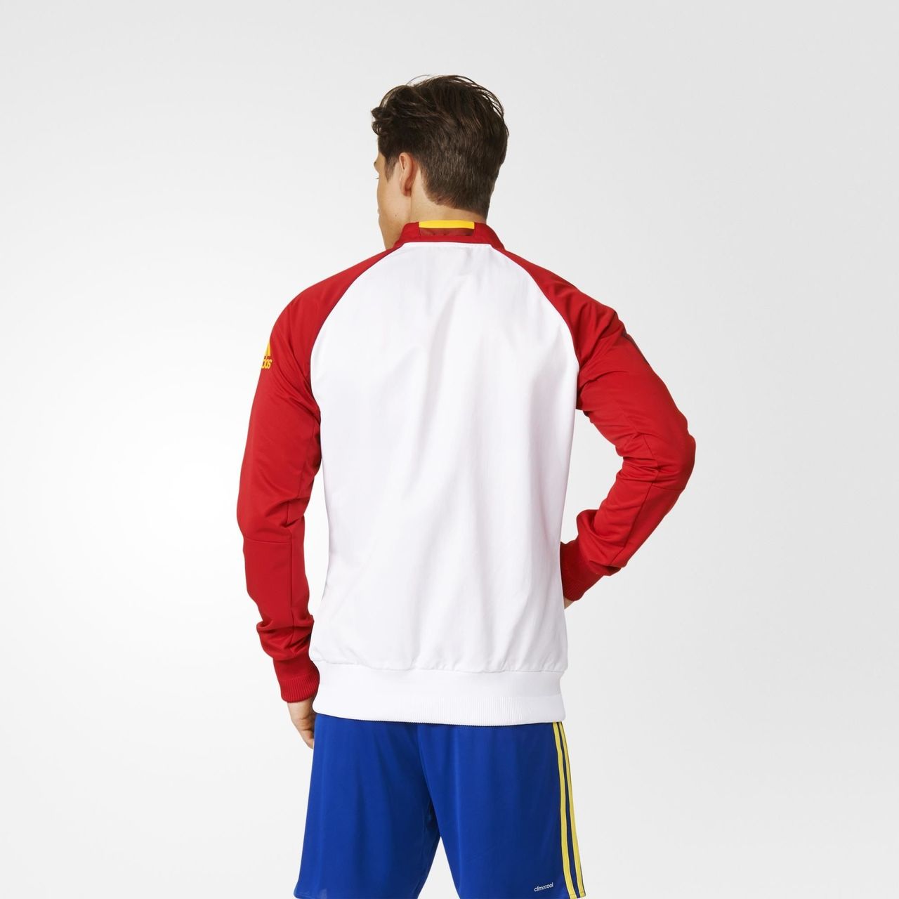 La Roja's tactical precision has earned them a place in football history. Wear the team colours and share the energy of UEFA EURO 2016™ in this adidas football jacket. This full-zip jacket is worn by Spain's players as they enter the pitch in France. It features a Spanish Football Federation detail printed on the chest and 100% recycled content.