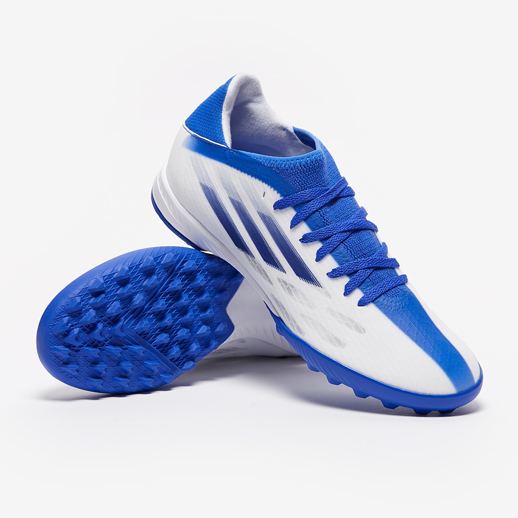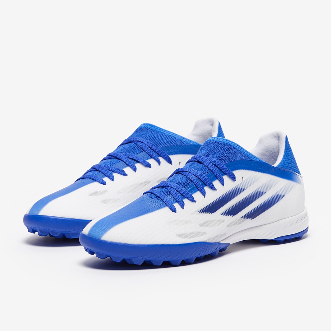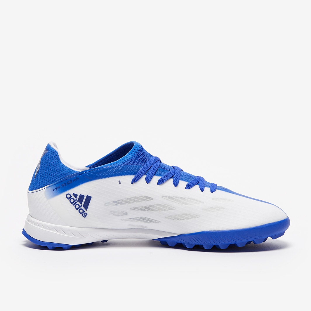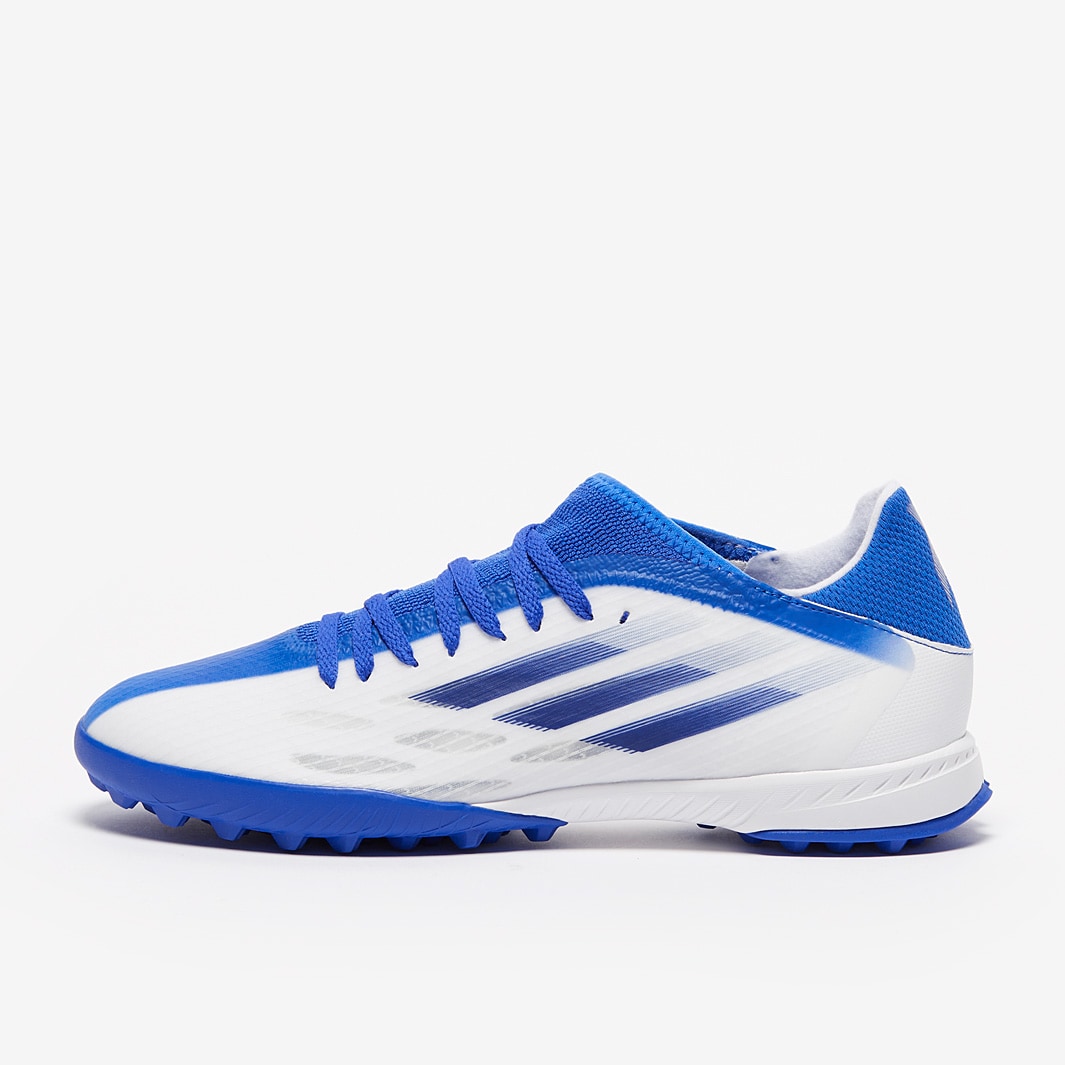 Find your flow wearing adidas X Speedflow.3 TF football shoes in White/Legacy Indigo/Hi-Res Blue , featuring a new, re-engineered upper for effortless speed in every direction.