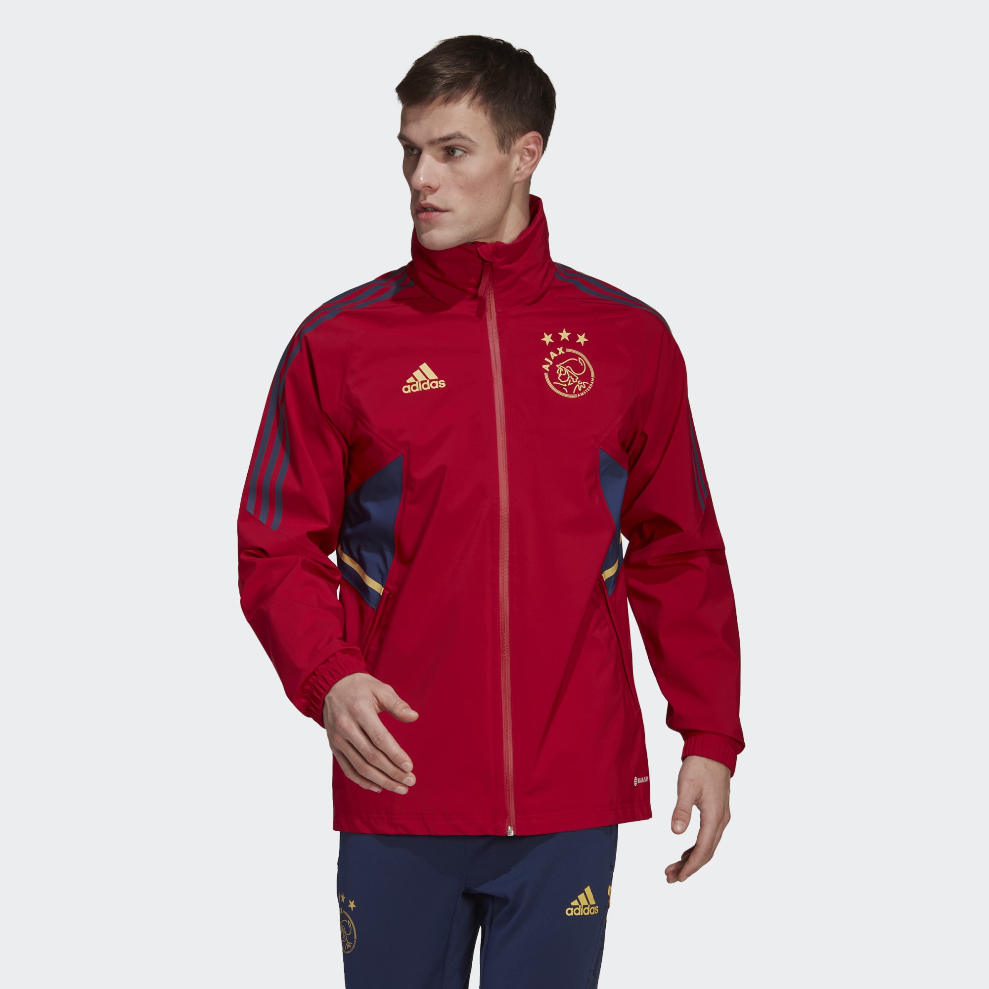 When the rain starts lashing down on the training field, the football needn't stop. This adidas Ajax Amsterdam jacket deals effortlessly with wet and windy weather thanks to RAIN.RDY.