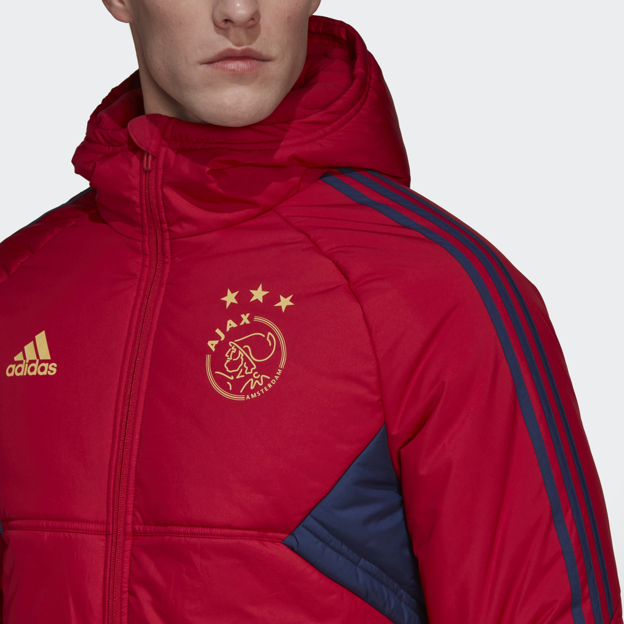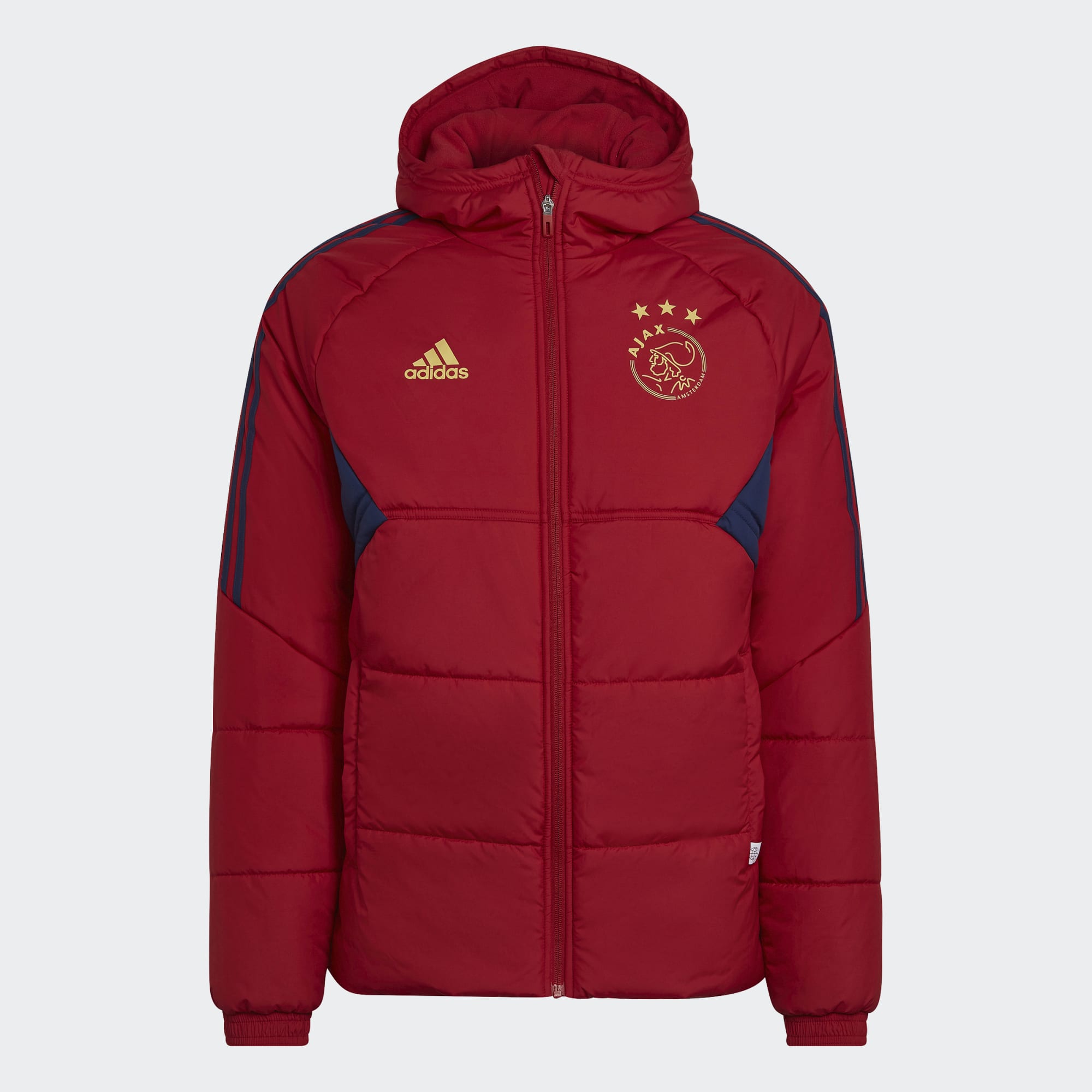 Modern football training isn't all about rondos and running. When the action slows to a crawl during cold weather sessions, Ajax Amsterdam players ensure they have this adidas Ajax Condivo 22 Winter Jacket within reach.