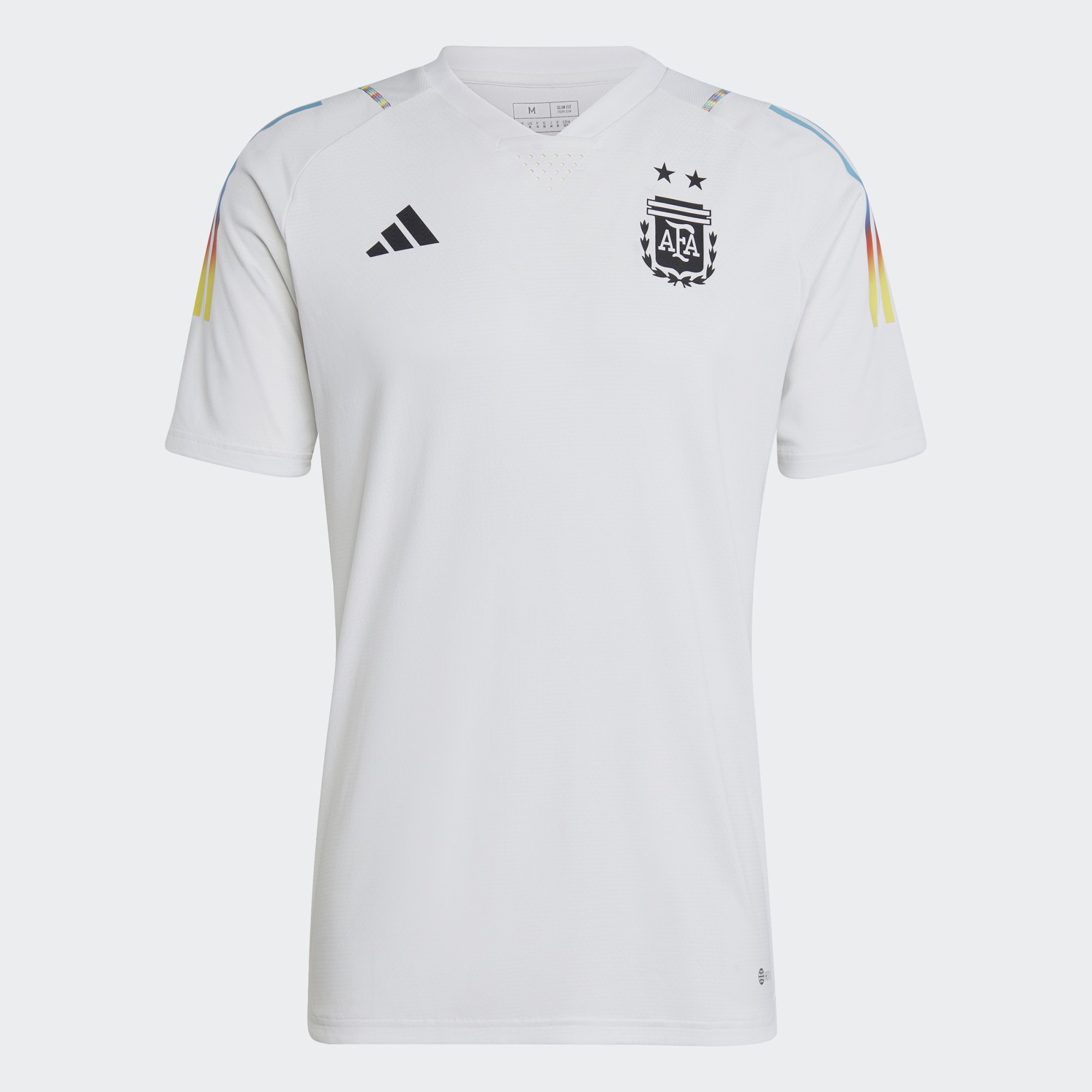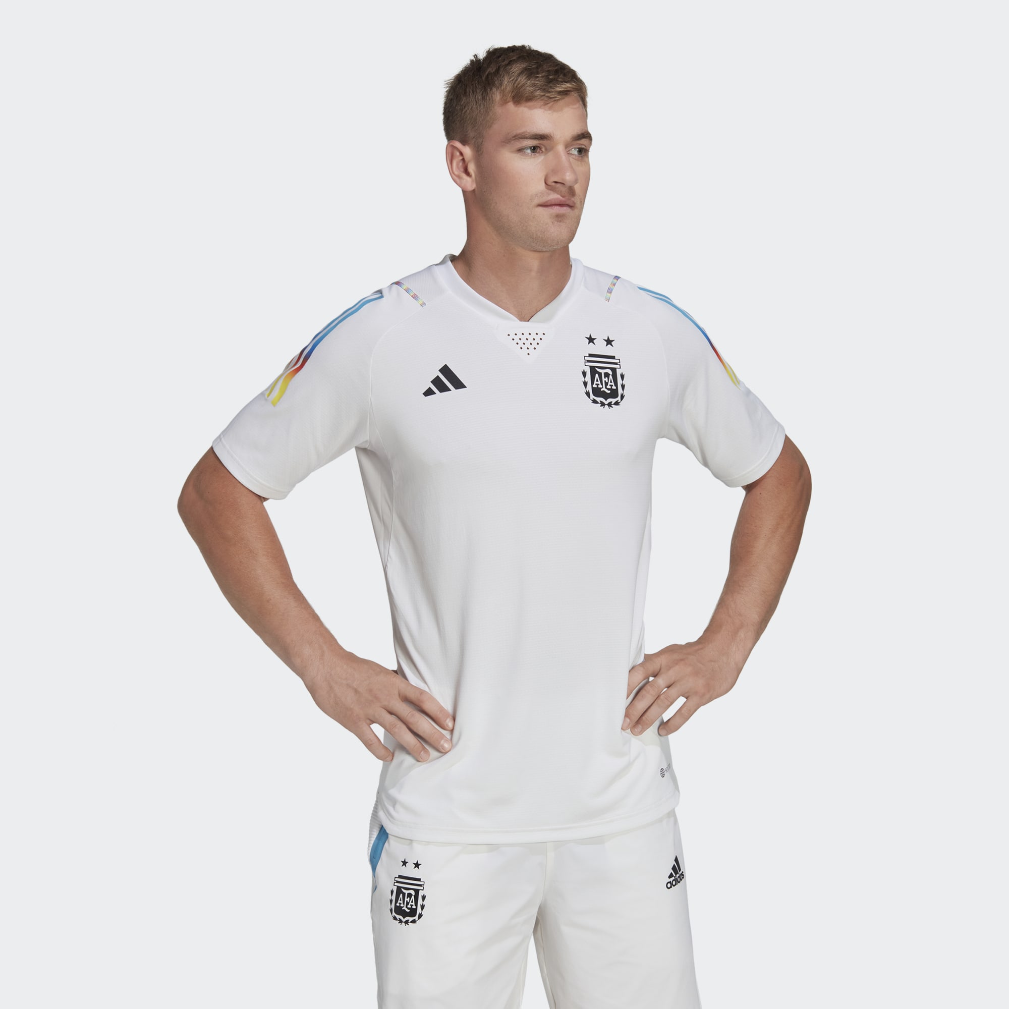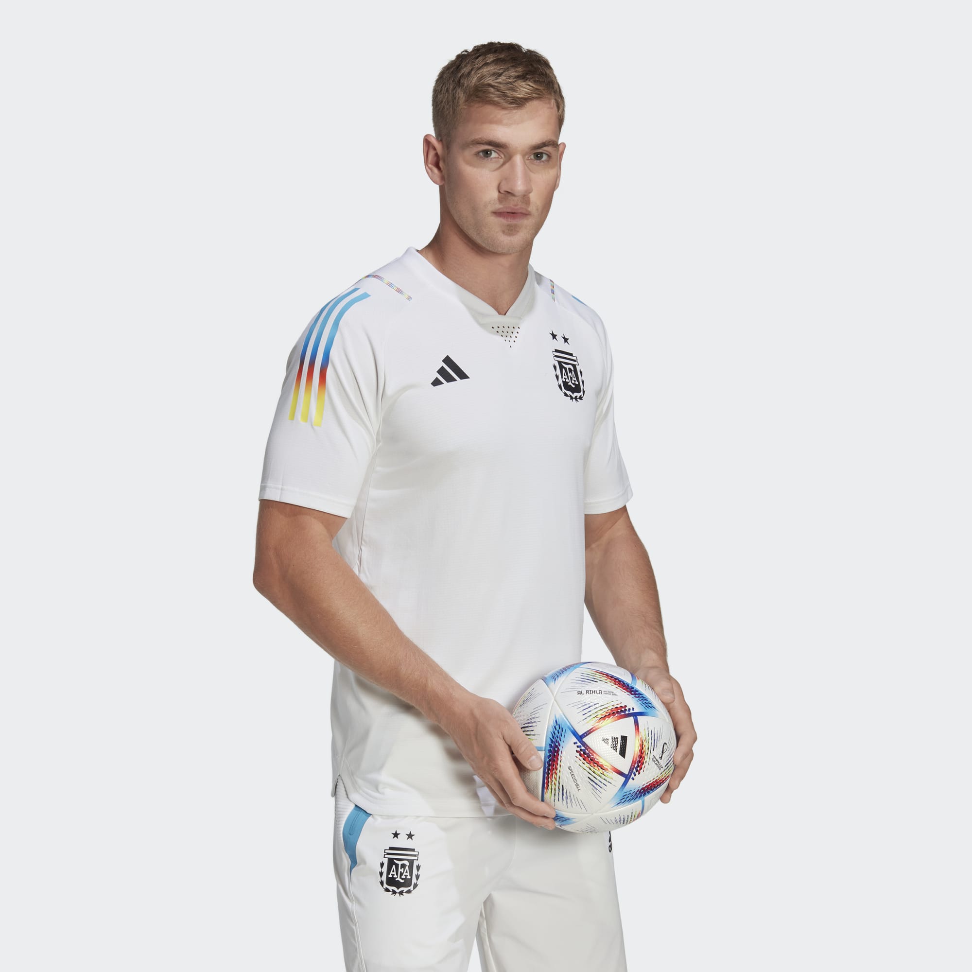 On their quest for a hat-trick of victories, Argentina's players wear adidas Argentina Tiro 23 Game Day Pre-Match Jerseys like this one as they warm up before the biggest matches of their careers.