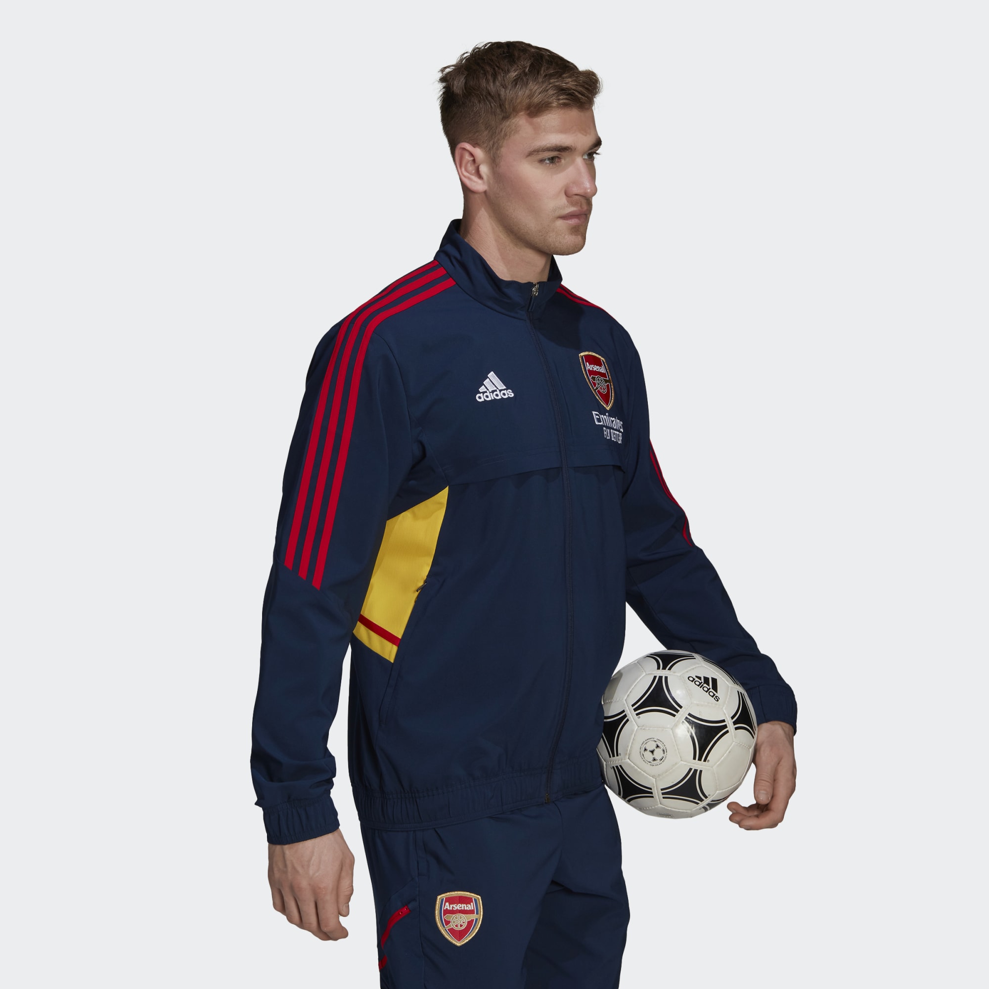 When the Arsenal squad want to look like a team off the field, they pull on this adidas Arsenal Condivo 22 presentation track top.