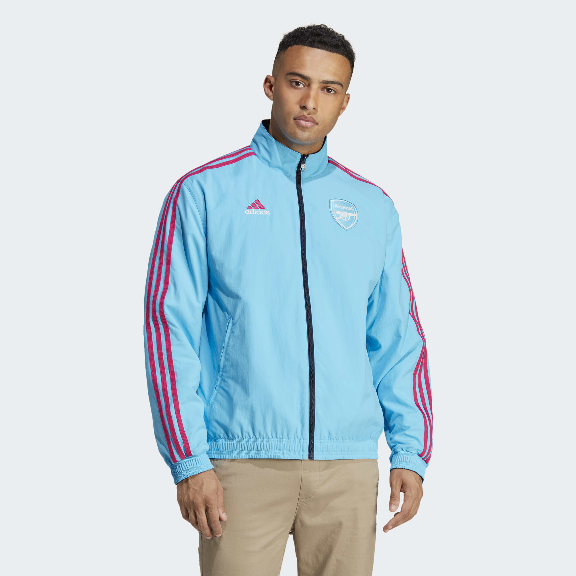 This adidas Arsenal Anthem Jacket in Sky Rush is the one the club's players wear in pre-match lineups. Its reversible design includes two match wear-inspired looks: one with a woven badge and the other showing off a printed one.