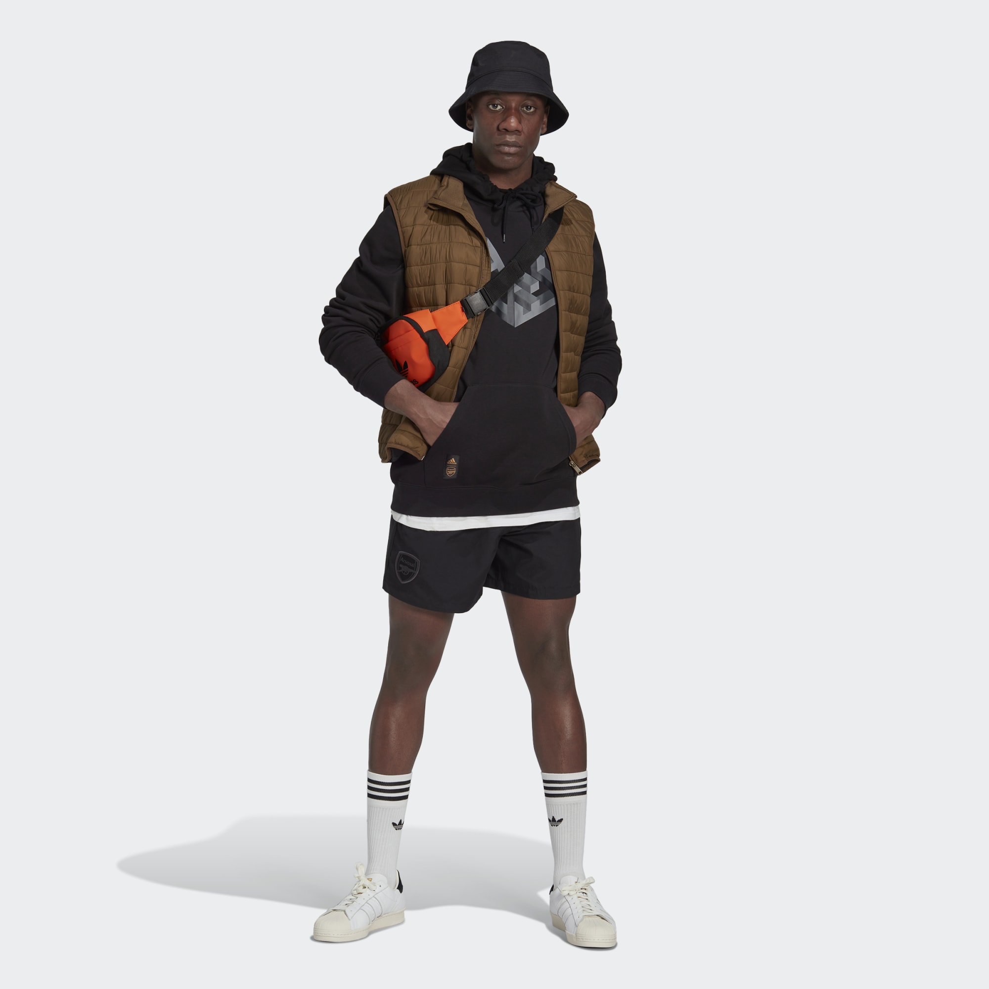 The image on the front of this adidas Arsenal hoodie takes its angular inspiration from the concrete sculpture fans file past on match days at the Emirates Stadium.