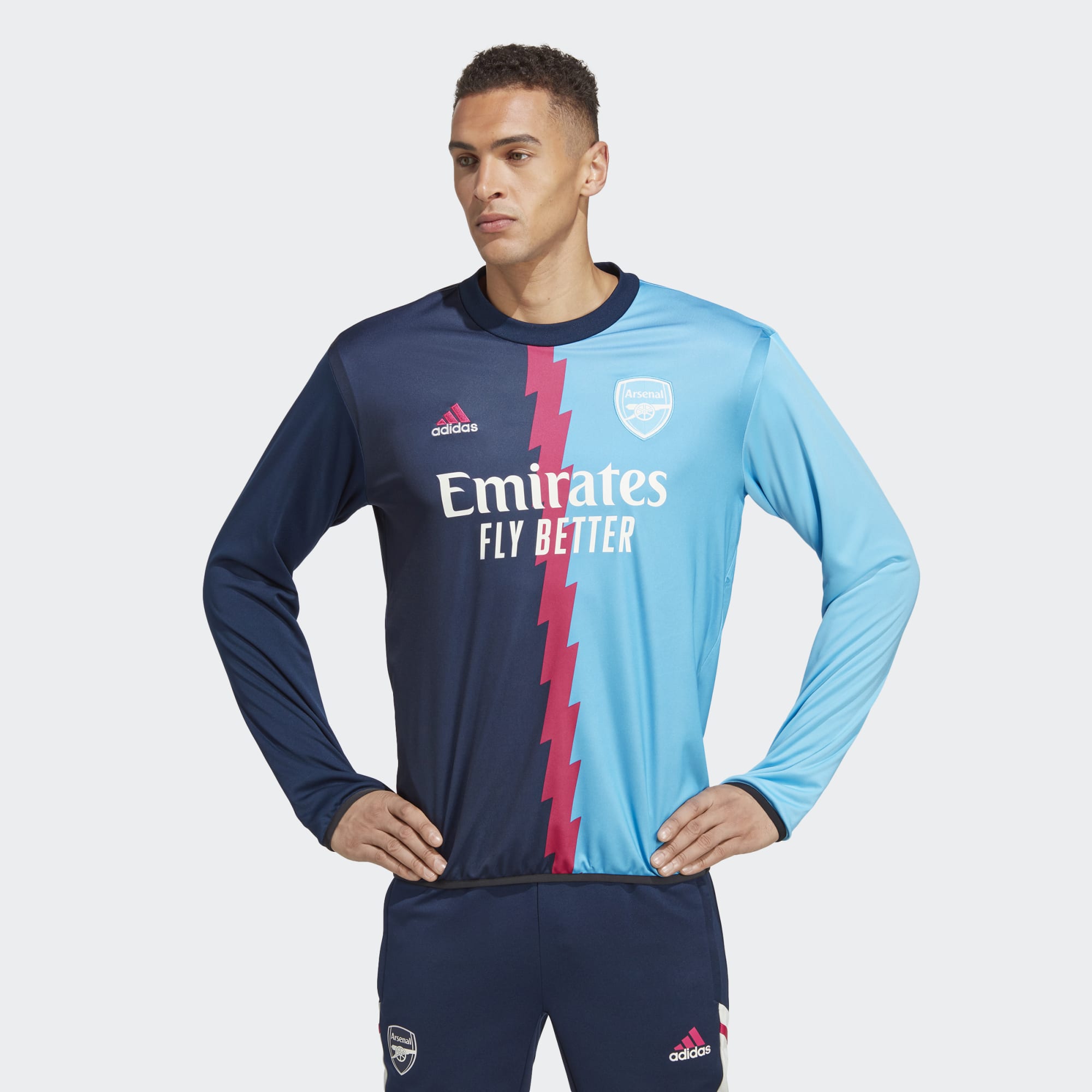 When they're preparing for kickoff on wintry afternoons and frosty evenings, Arsenal's players sprint across the pitch in adidas Arsenal Pre-Match Warm Tops like this one.