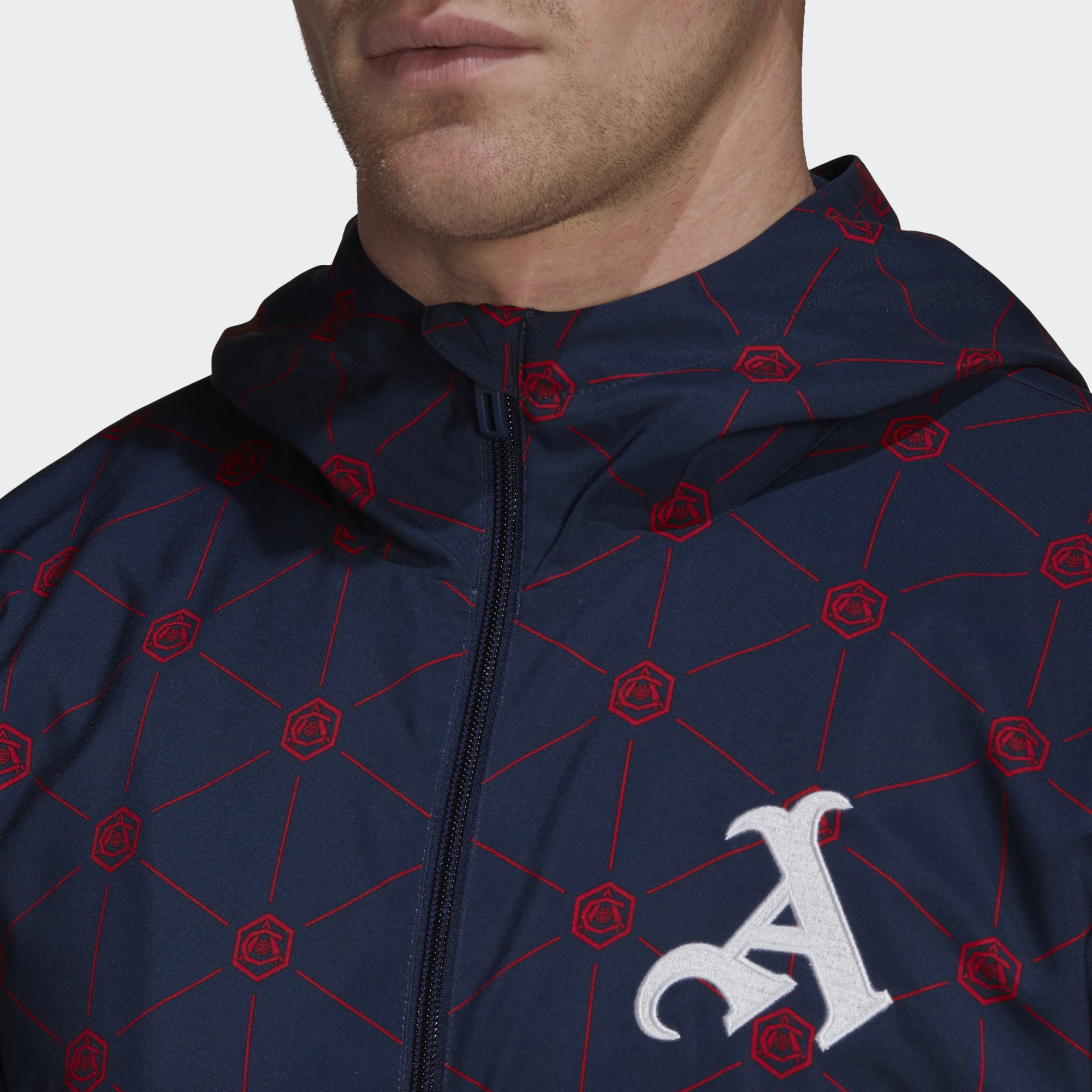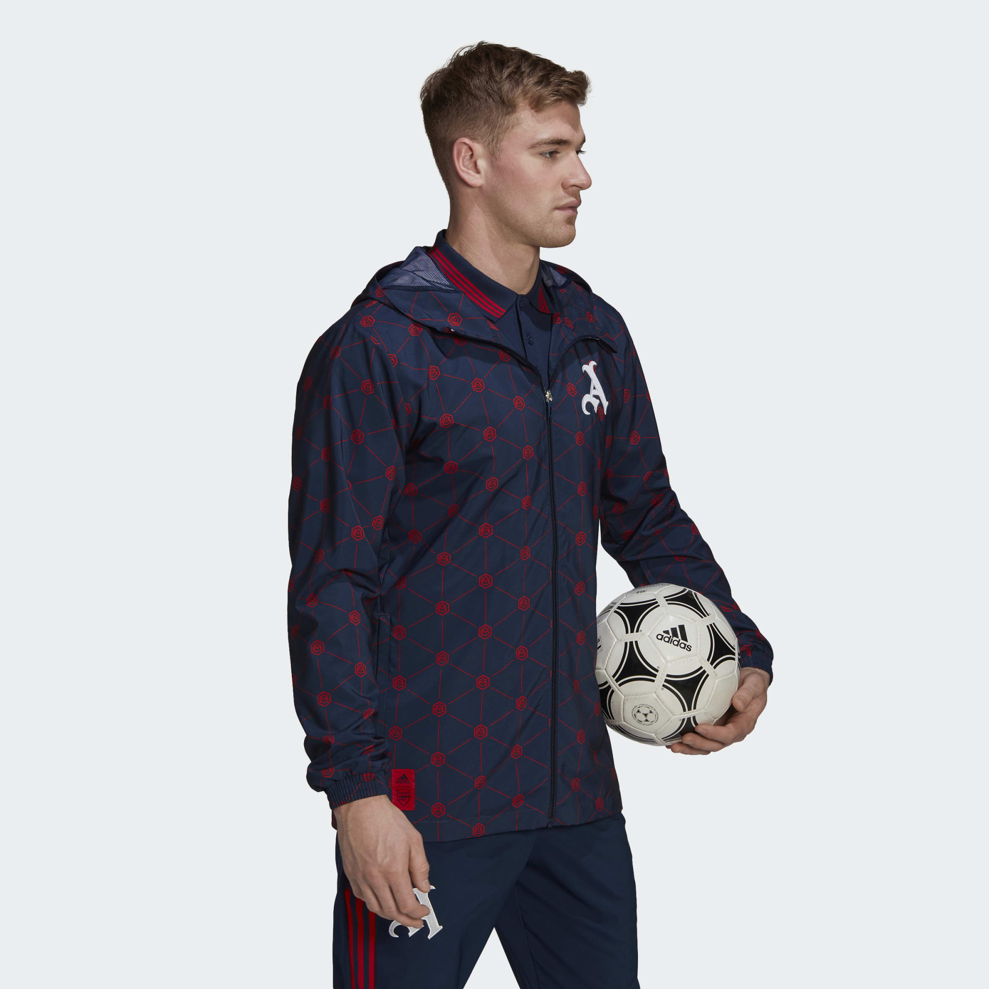 Created for football fans who take style seriously, this adidas Arsenal windbreaker displays a monogram-inspired look featuring the art deco badge that used to sit above Highbury's main entrance.