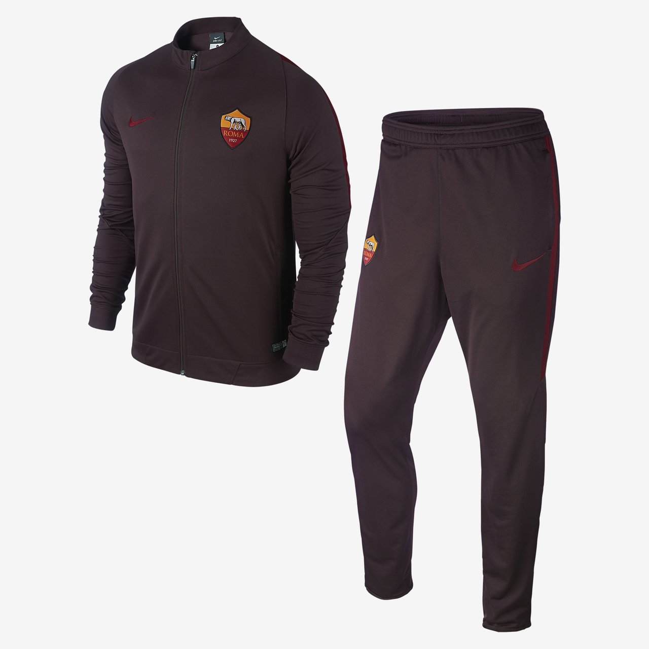 The A.S. Roma Revolution Sideline Knit Nike Football Warm-Up includes a track jacket and slim-fitting trousers made with sweat-wicking fabric for a comfortable fit on and off the pitch. Ergonomic seams offer enhanced range of motion, while zip hems provide easy changing over boots.