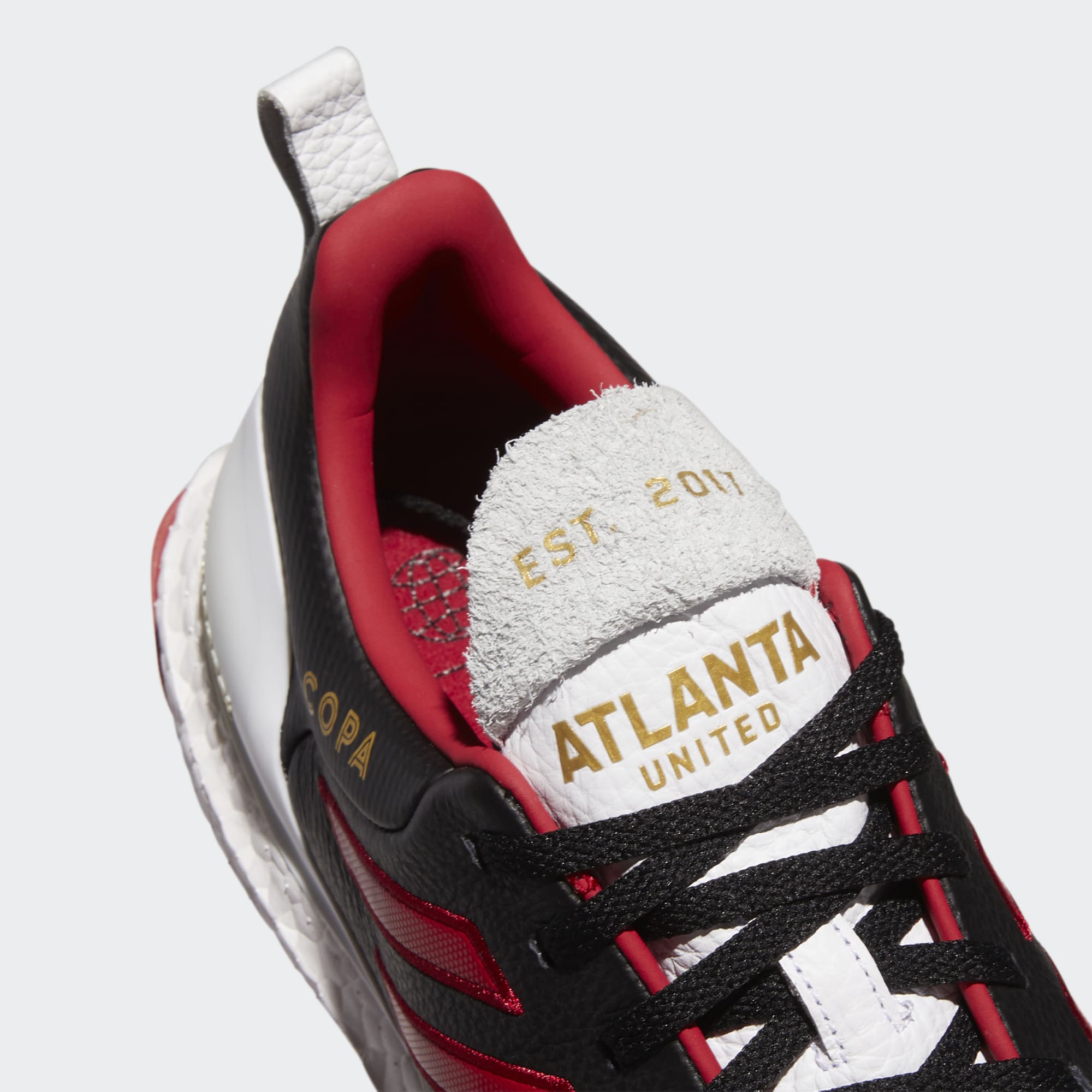 The Ultraboost x Copa collaboration brings a classic football shoe look to comfortable, everyday running shoes with these Atlanta United FC Ultraboost DNA x Copa Shoes in Core Black / Team Victory Red / Cloud White.