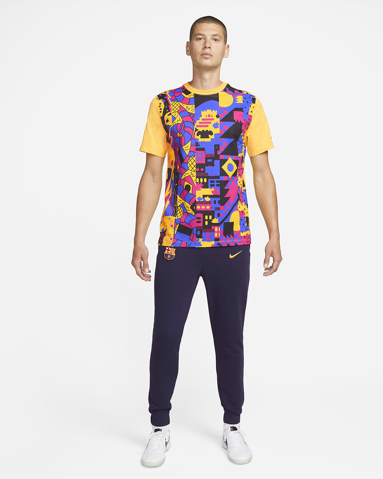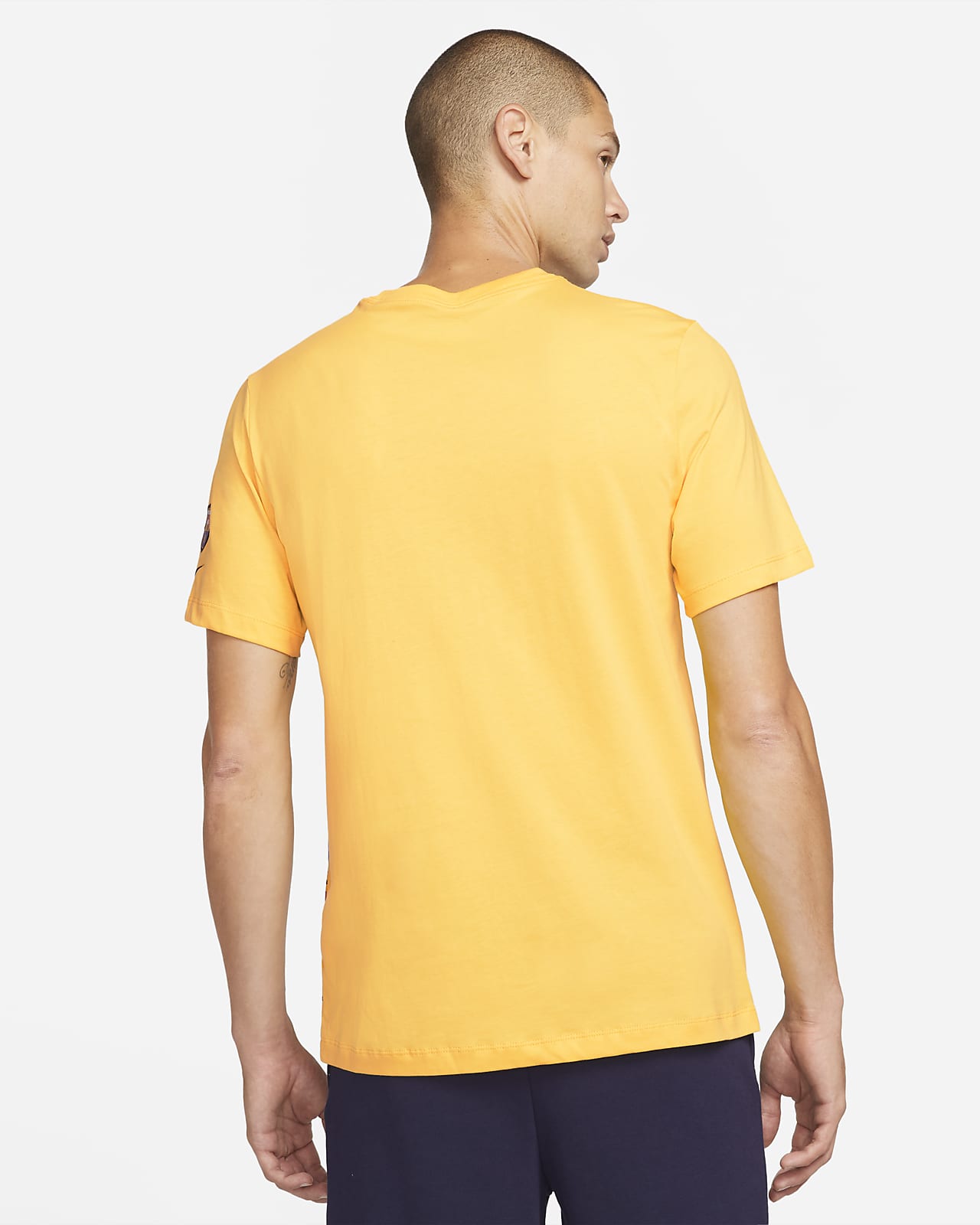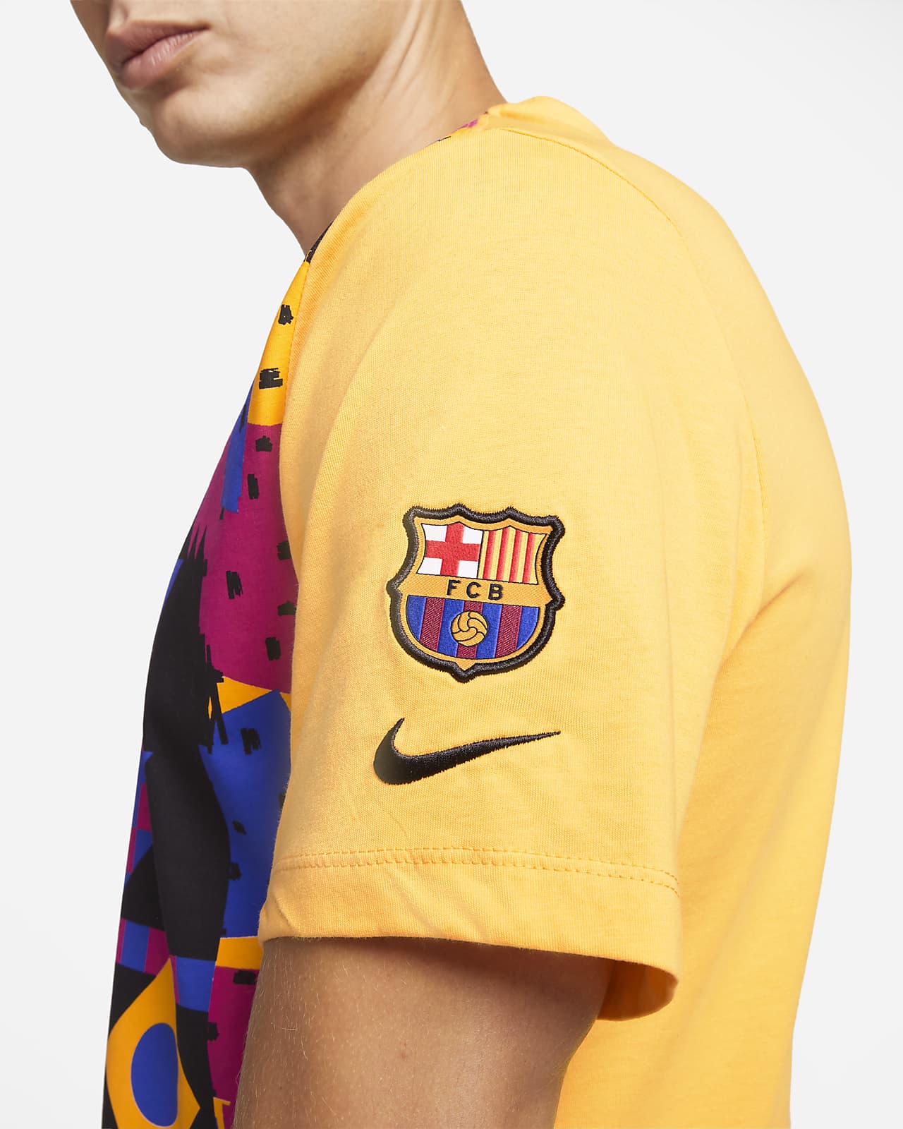 For this head-turning tee, Nike invited children across 5 districts throughout Barcelona to design their own "Barcelona scarf". They collaged those designs into this vibrant print.