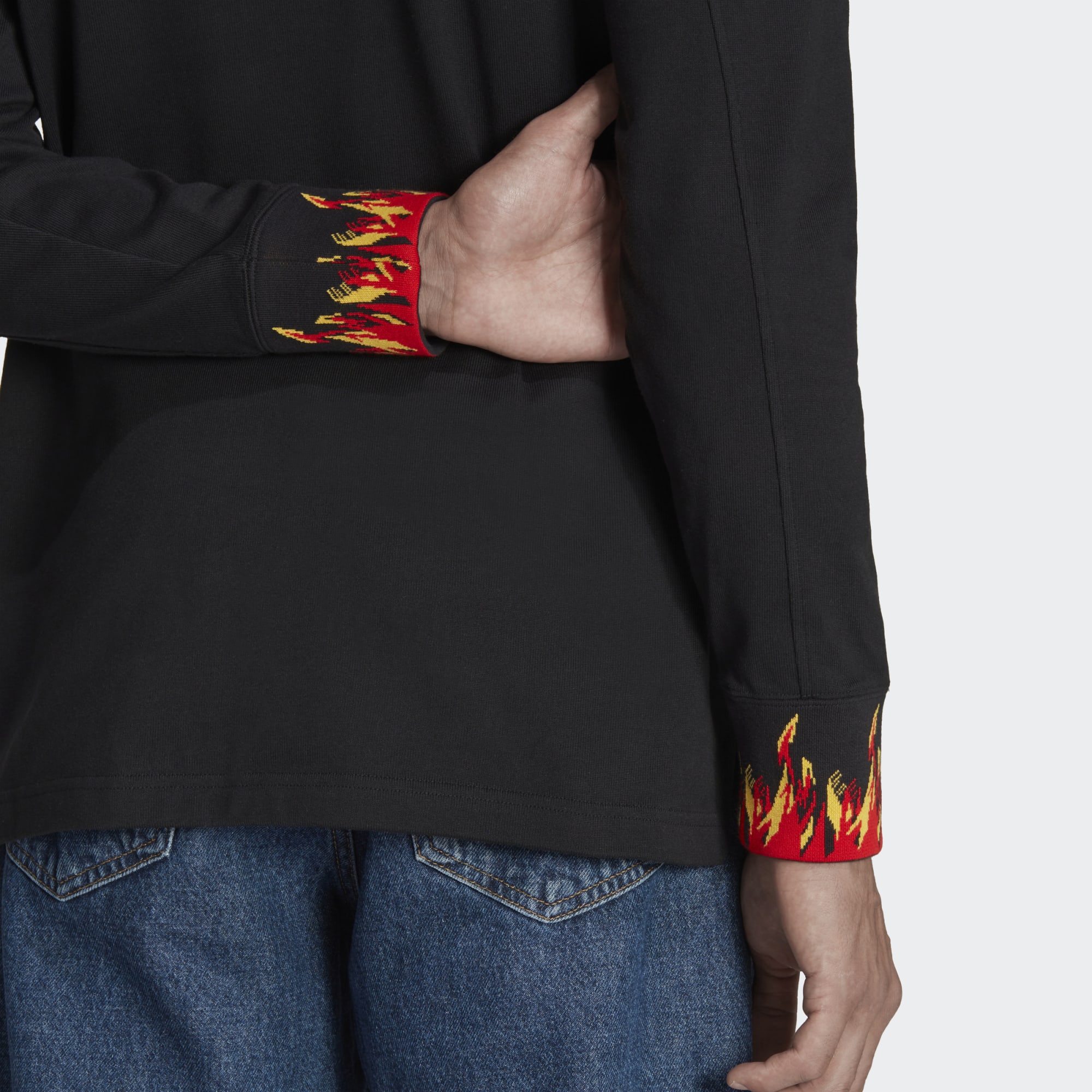 Single jersey cotton is soft and lightweight. The flame details on the knit cuffs pay homage to the team's nickname — the Red Devils.