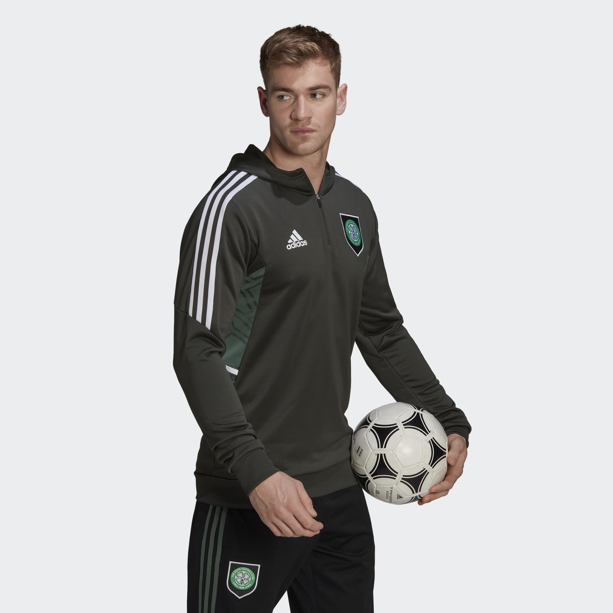 Part of Celtic FC's training range, this adidas Celtic FC Condivo 22 Hooded Track Top in Legend Earth is a handy option to wear between sessions.