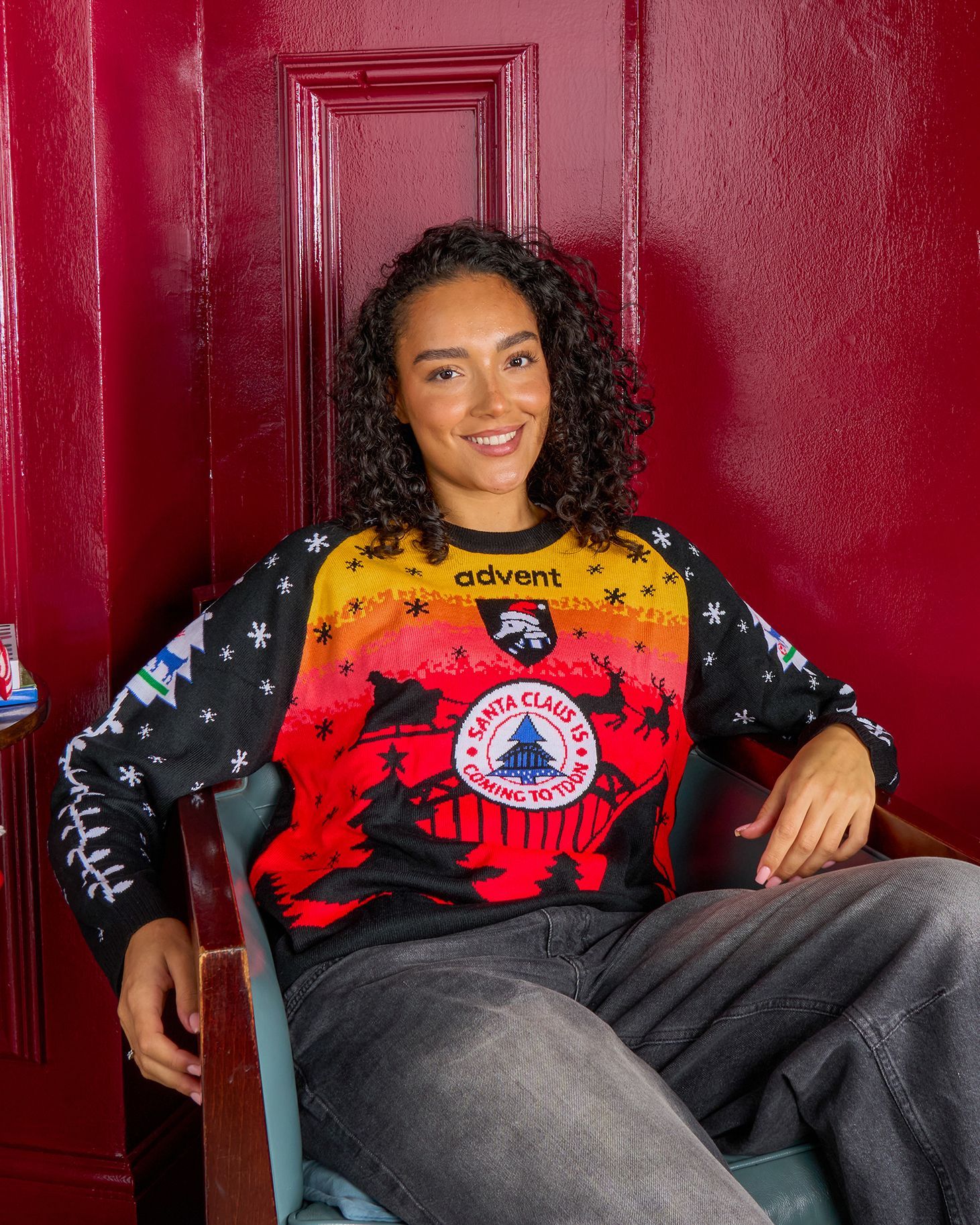 White snowflake patterns continue across the sleeves and back, where Hislop’s name and the number 15 are displayed in bold grey typography. Knitted in a relaxed fit, the jumper combines football kit nostalgia with a Christmas twist, and is available 12pm (UK Time) on October 29th.