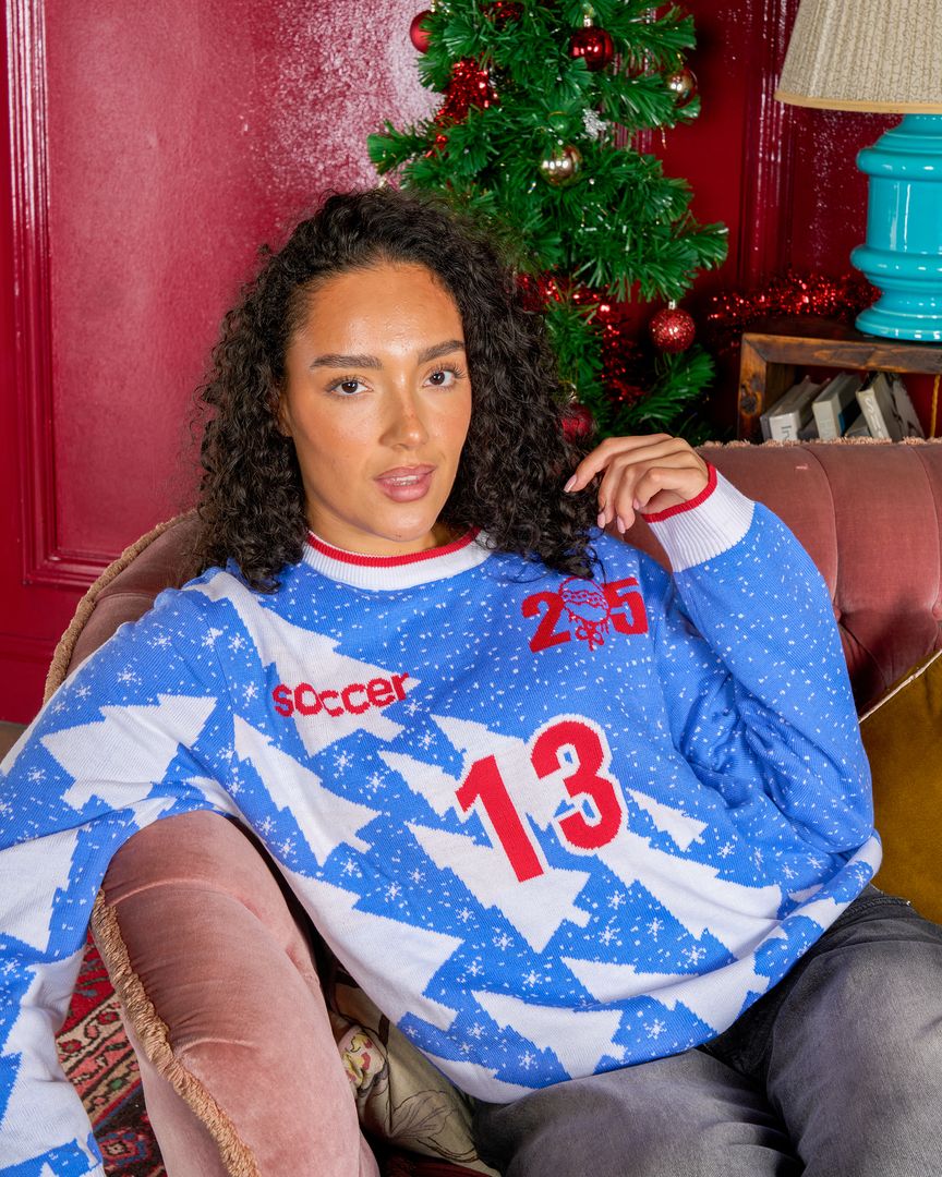 CFS has revealed a Christmas jumper inspired by the USA’s 1994 World Cup away shirt worn by Cobi Jones. The design reimagines the famous denim blue and white star pattern as a festive edition, replacing the stars with stylised tree shapes and adding snowflake details throughout.