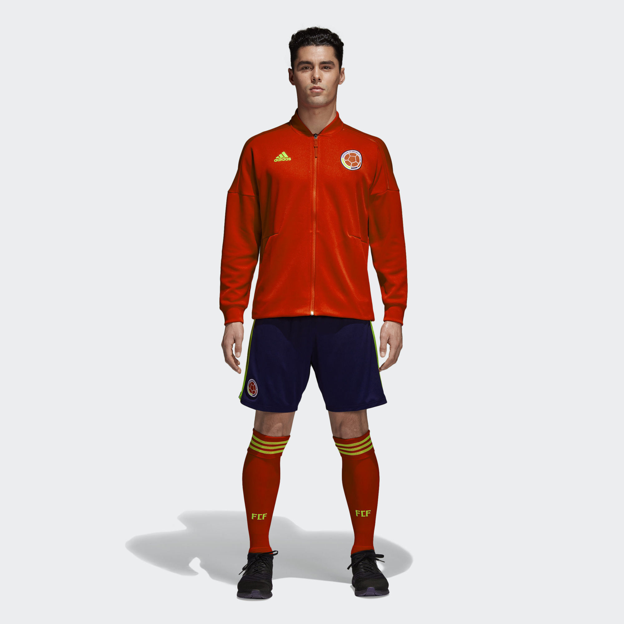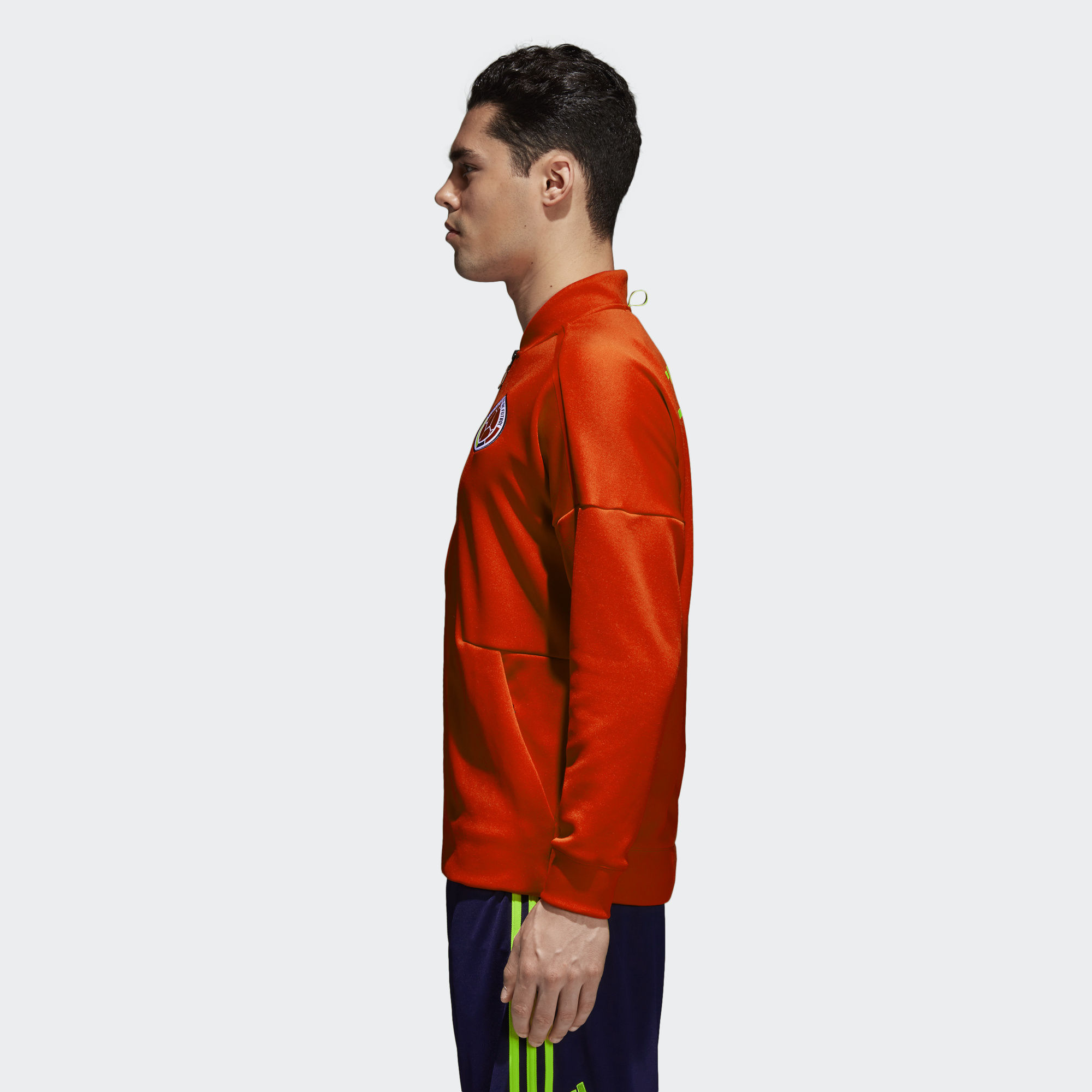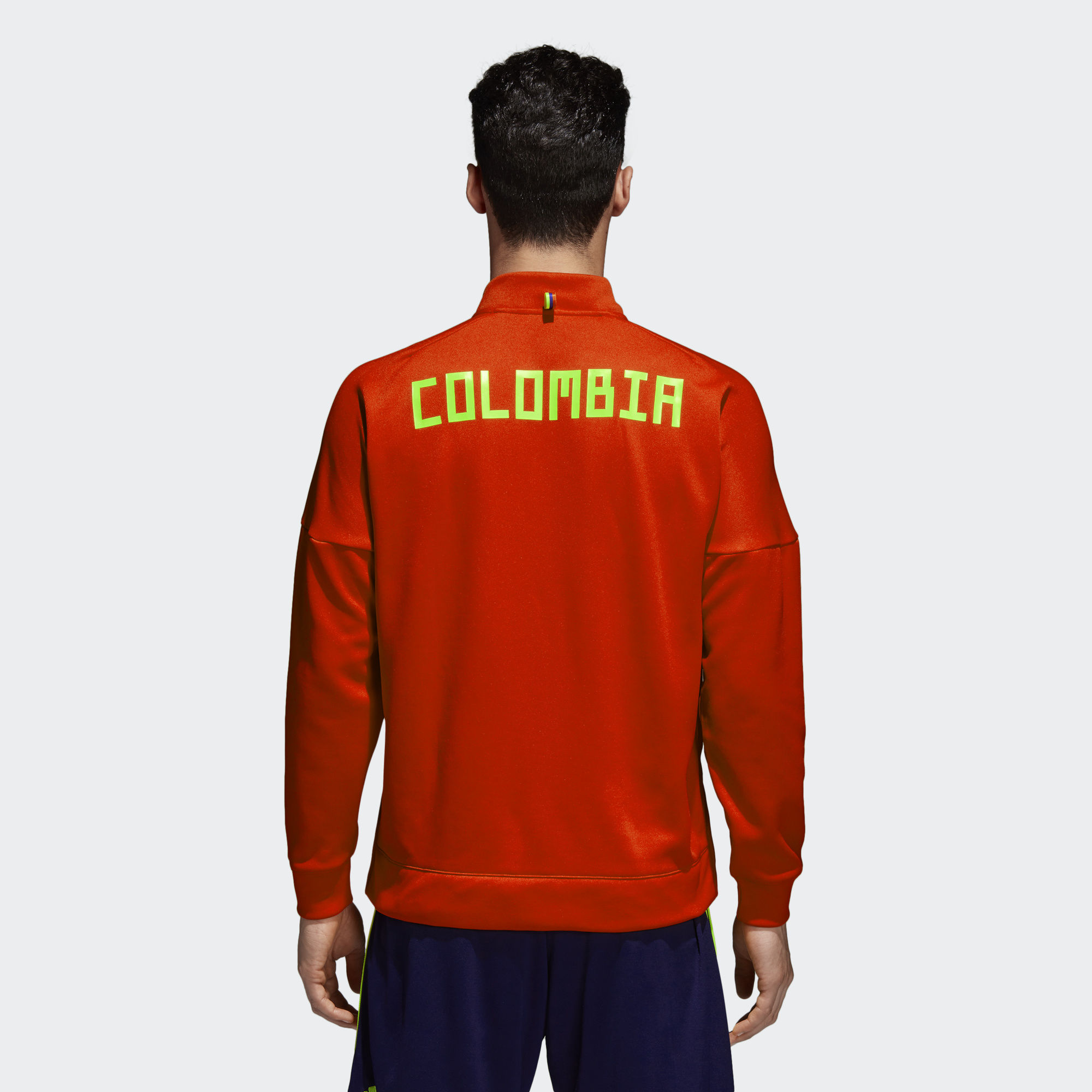 This Colombia 2018 Adidas Z.N.E. Jacket is made in Colombia's national colours and has both a printed Colombia graphic and a woven crest.
