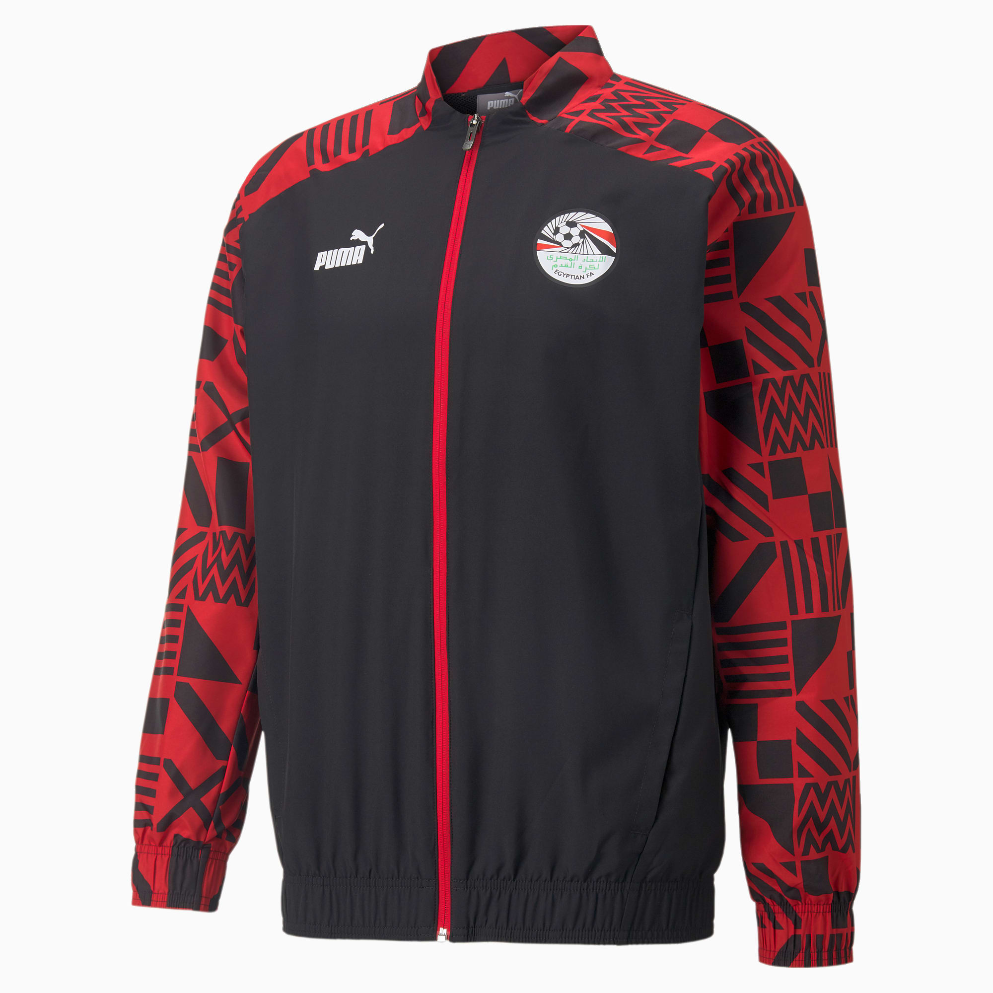 Puma released this lightweight Egypt 22/23 prematch jacket in Tango Red/Puma Black, designed to keep you warm and comfortable as you prepare for kick-off.