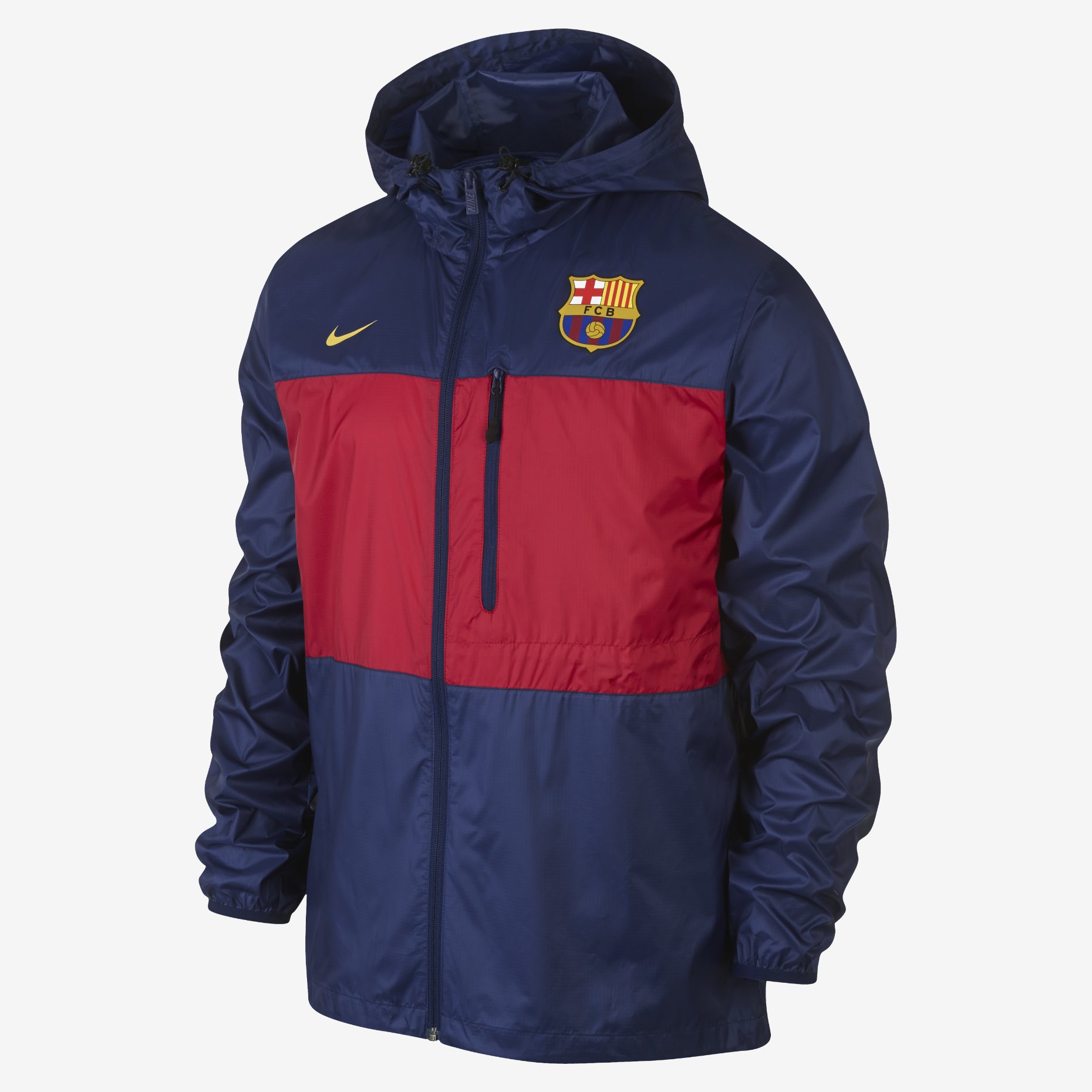 The FC Barcelona Winger Authentic Nike Football Jacket is made with lightweight, weather-resistant fabric and a hood that help keep out light wind and rain. Bold screen prints show your support for an elite team, while the packable design provides convenient storage when conditions improve.