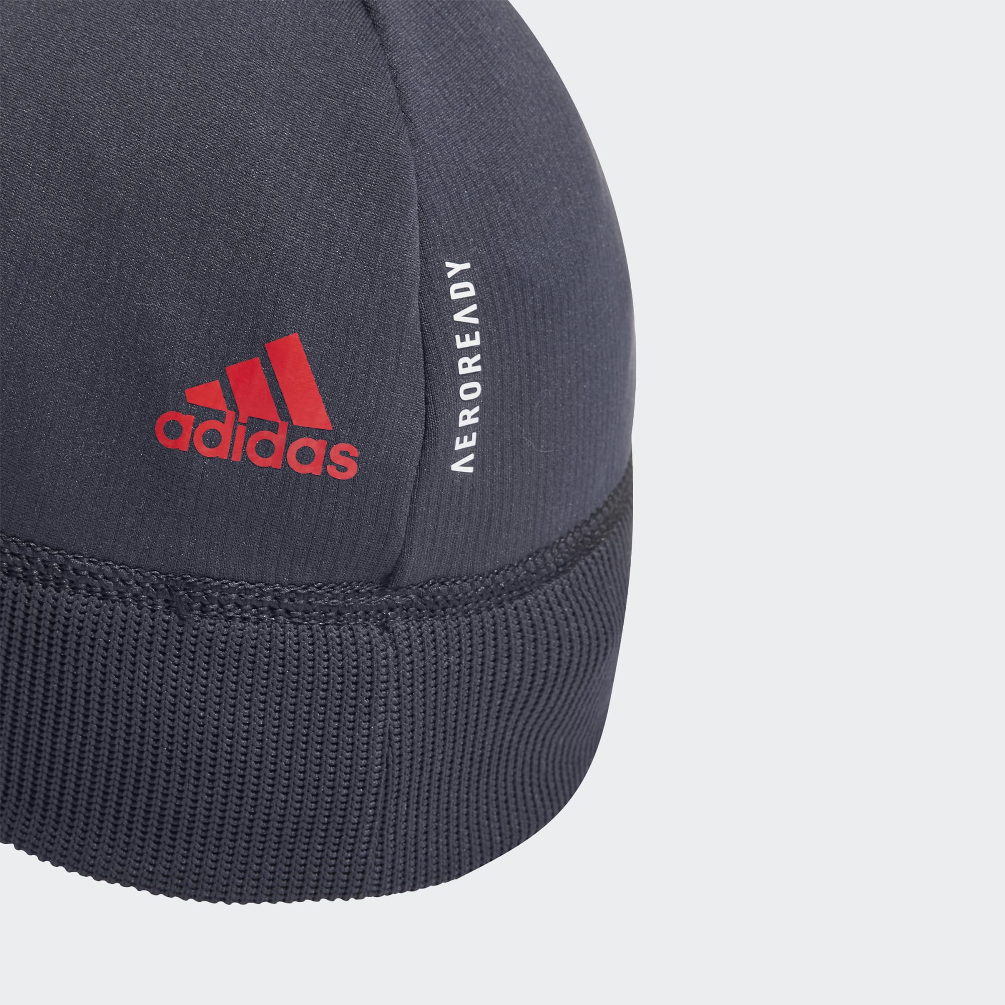A heat-transferred version of Bayern Munich's famous badge stands out on the front of this adidas football beanie.
