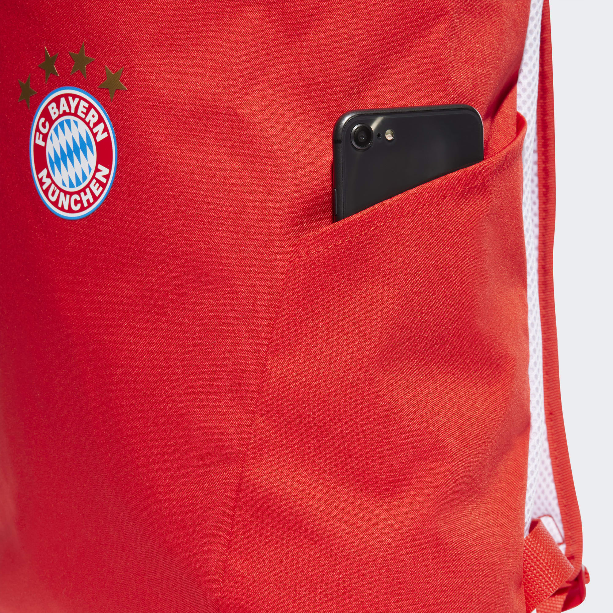 A subtle, screenprinted version of Bayern Munich's world-famous badge sits on the front of this adidas football backpack.