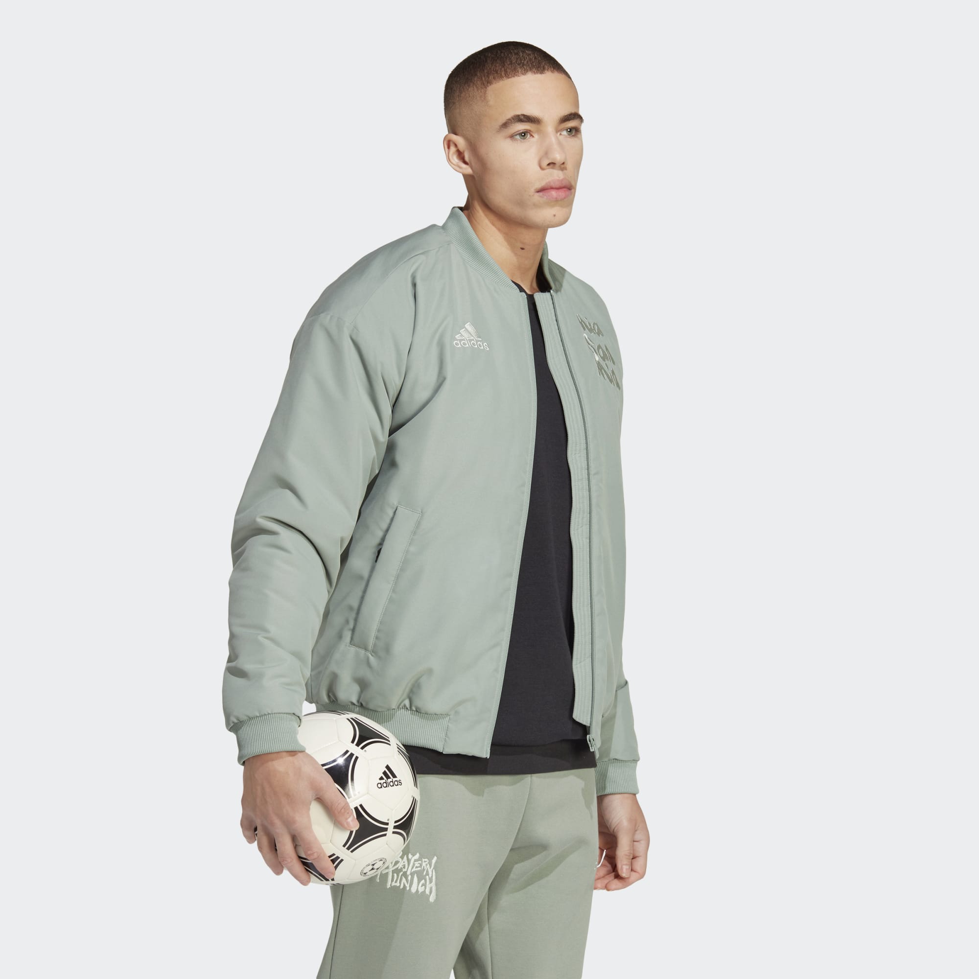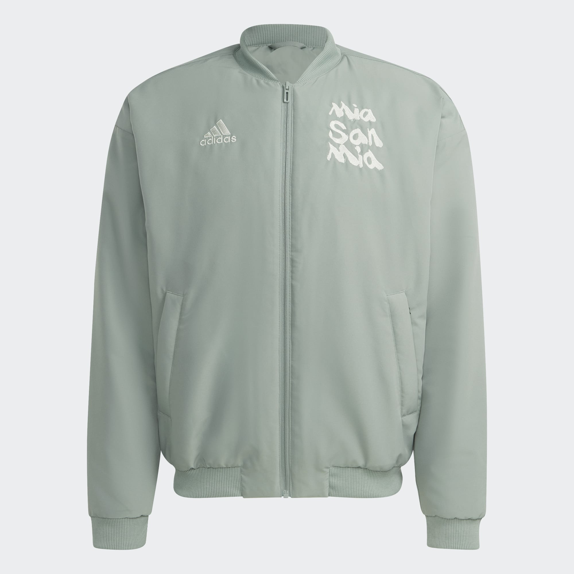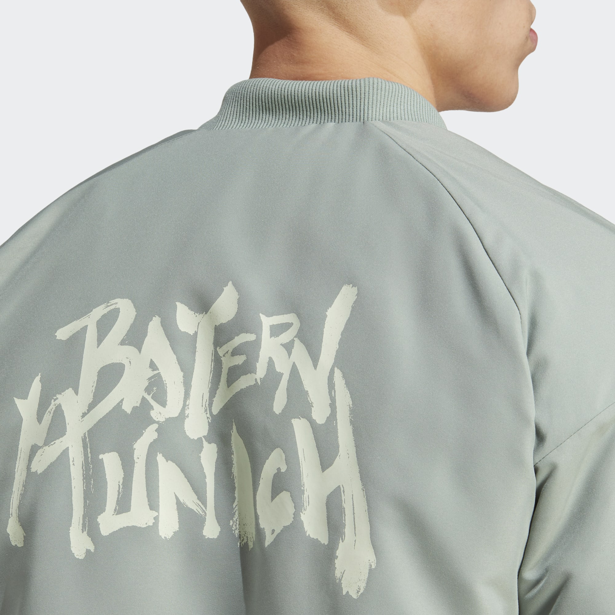 Embroidered onto the smooth exterior of this bomber-style football jacket from adidas, Chinese calligraphy signoffs display the Bavarian club's name and motto.