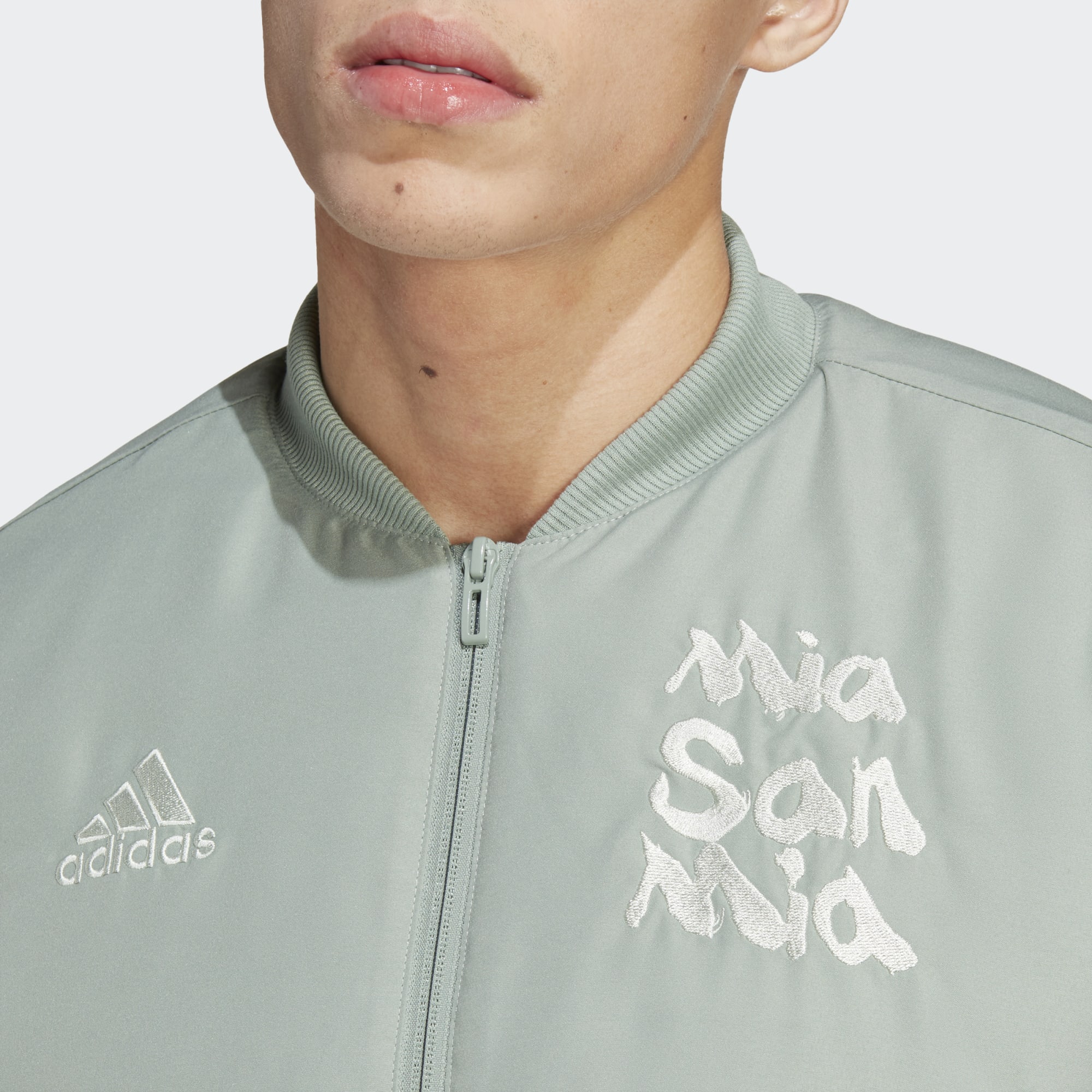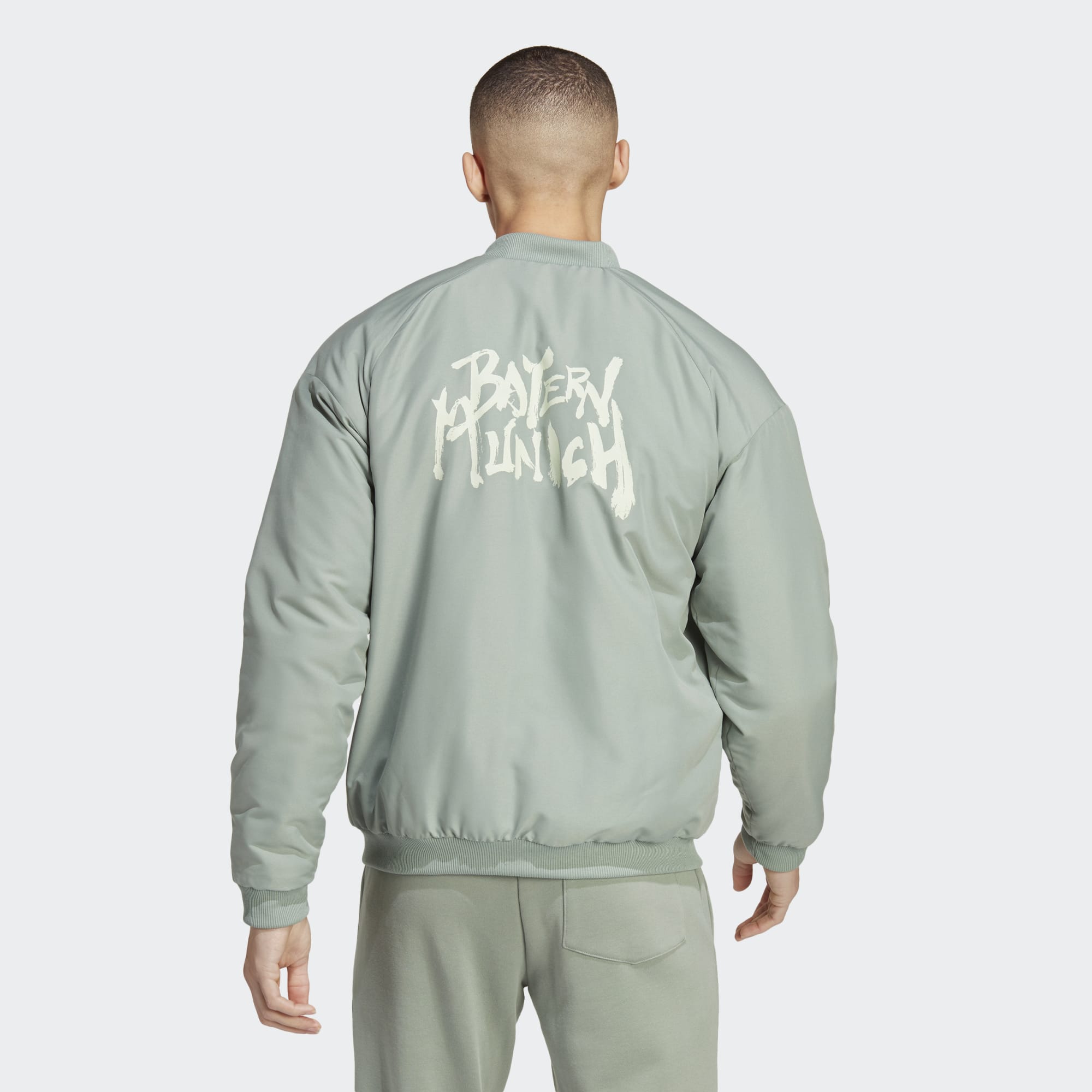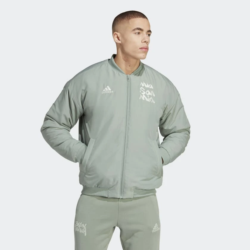 Embroidered onto the smooth exterior of this bomber-style football jacket from adidas, Chinese calligraphy signoffs display the Bavarian club's name and motto.
