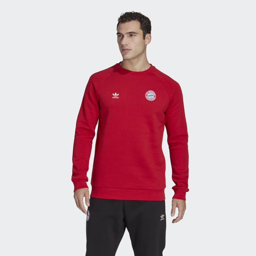 Clean. Classic. A club badge and a low-profile adidas Trefoil team up on the chest of this FC Bayern Essentials Trefoil Crewneck Sweatshirt in Team Power Red. But it's those famous red home colours that really steal the show.