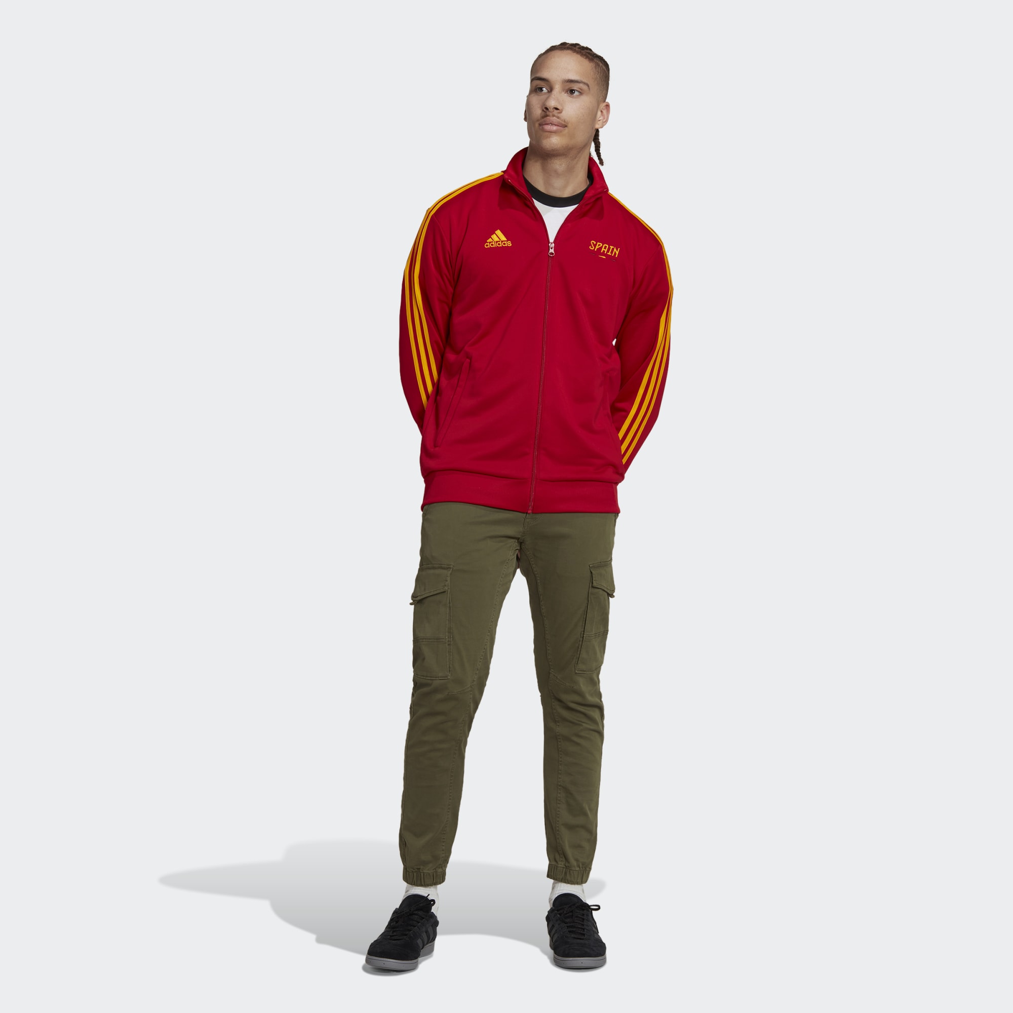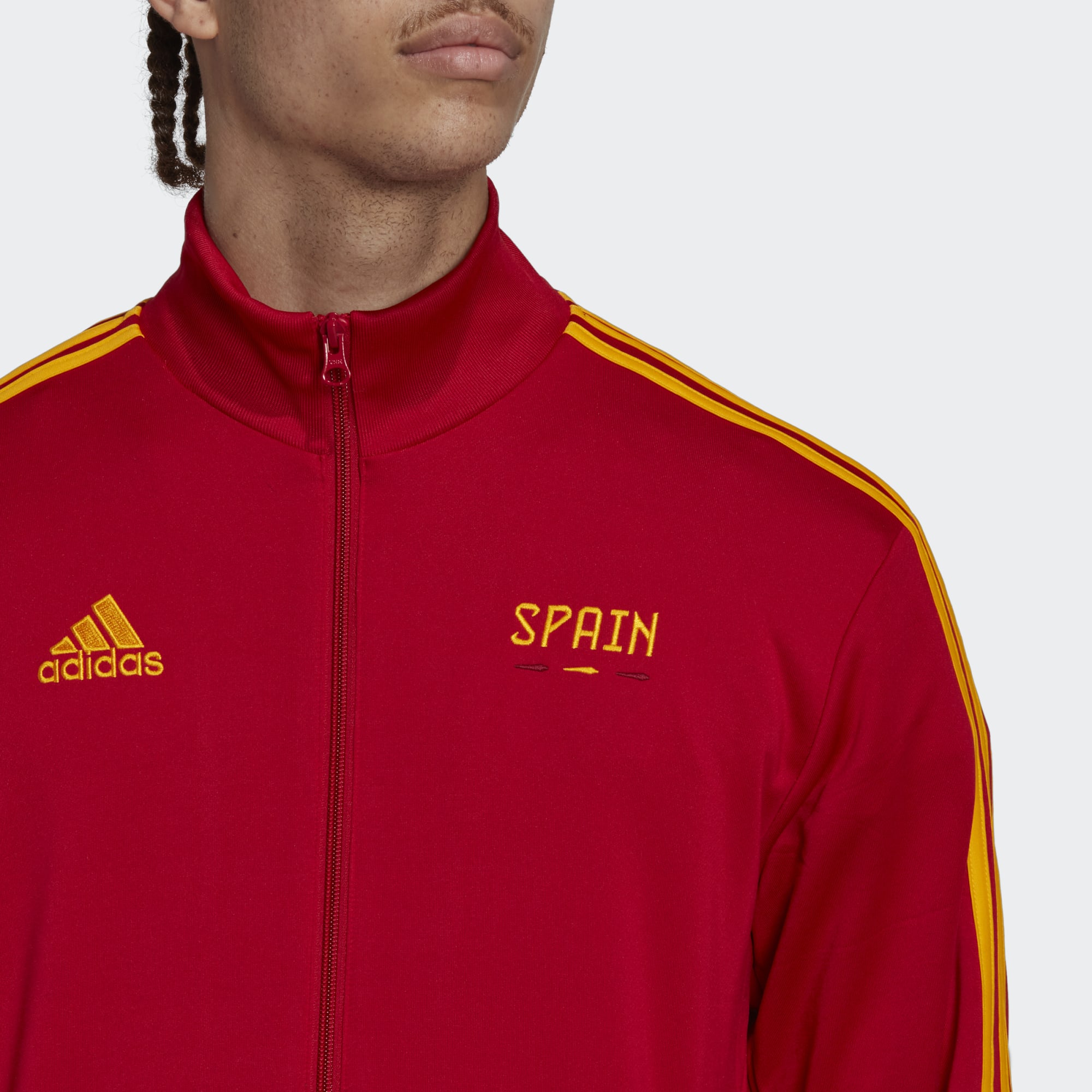 Zip up this adidas FIFA World Cup 2022™ football track top to show you believe in your team. "Spain" embroidered wording on the chest and a FIFA World Cup 2022™ logo on the back help build up the excitement.