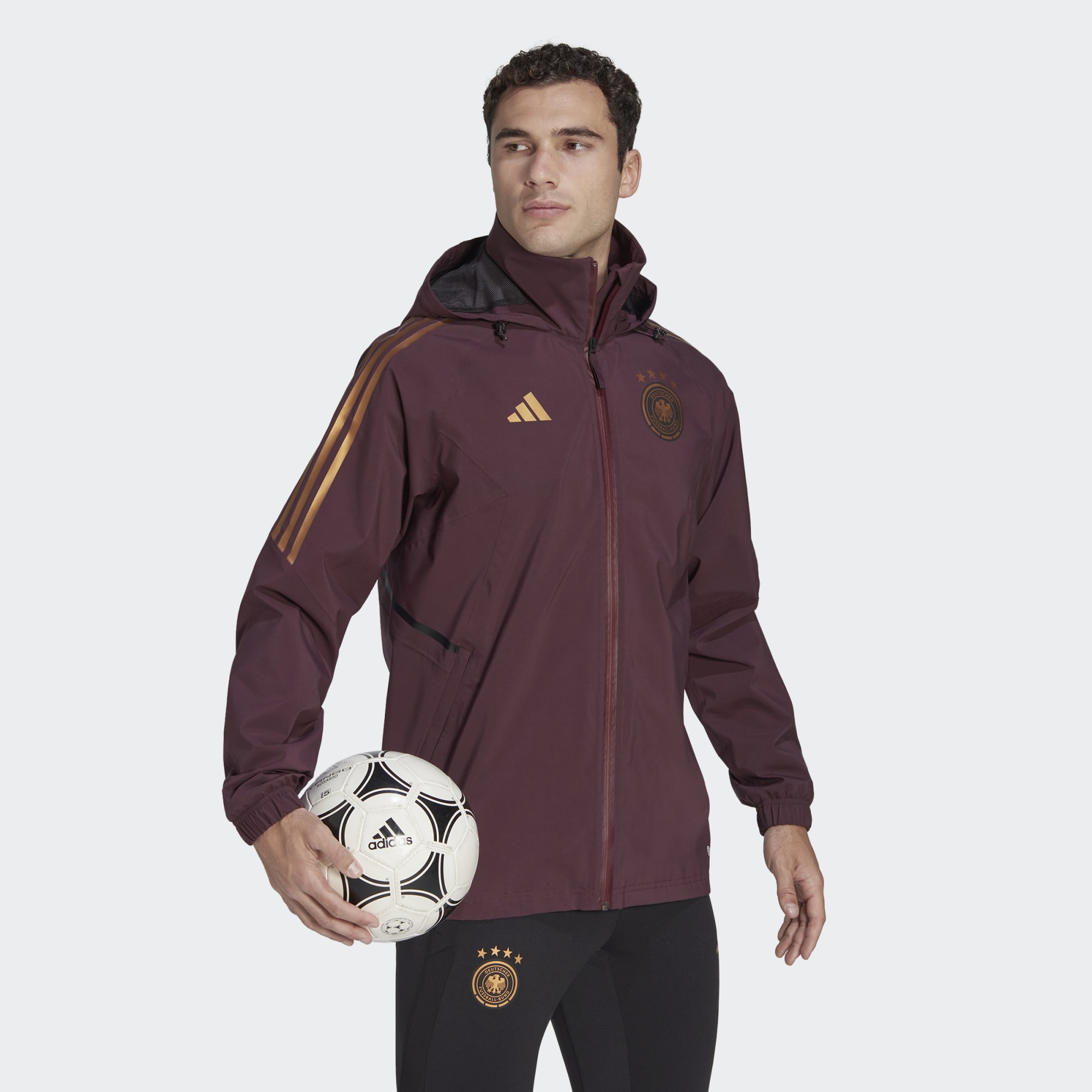 This adidas Germany Condivo 22 Rain Jacket is the one Germany players pull on to play through downpours on the training pitch.