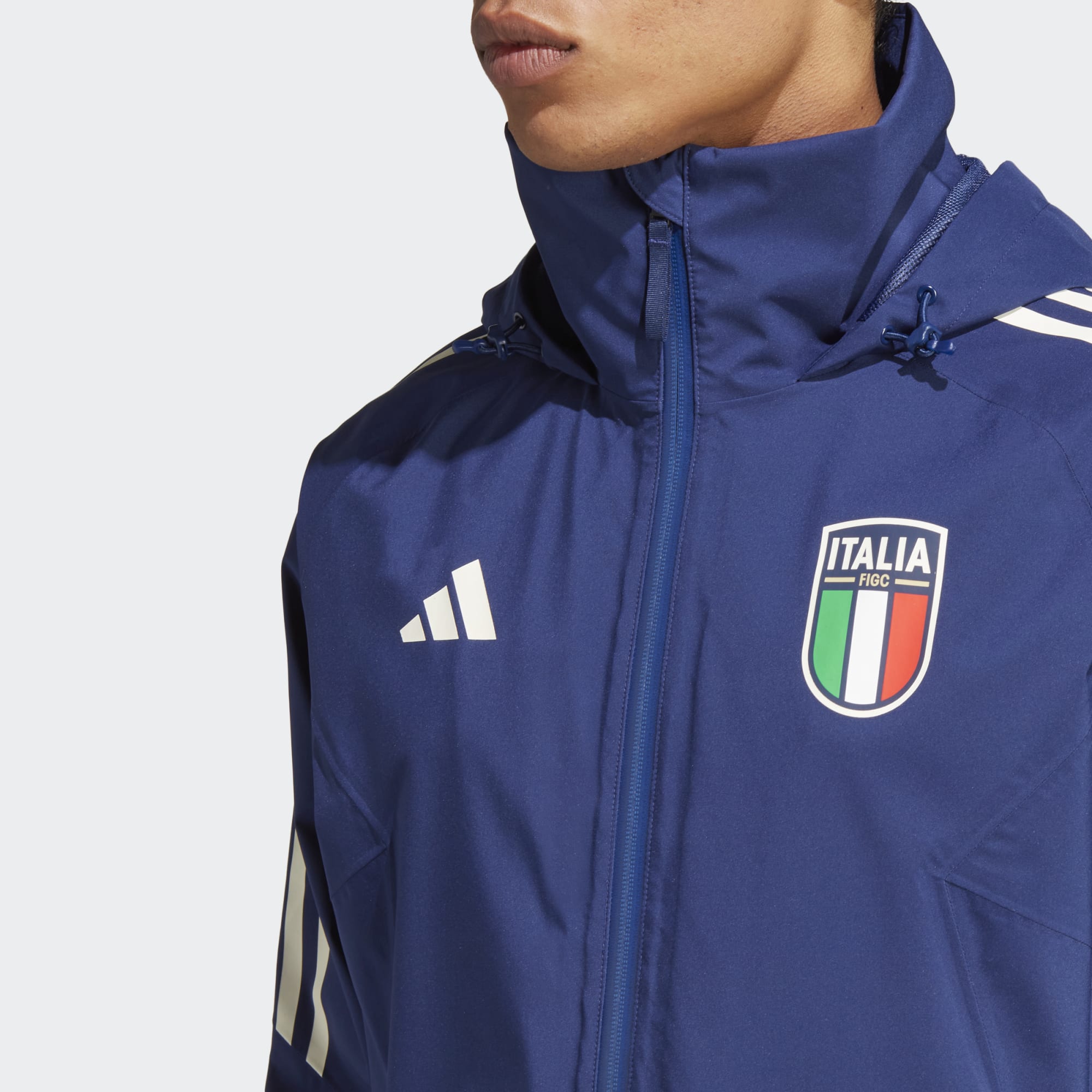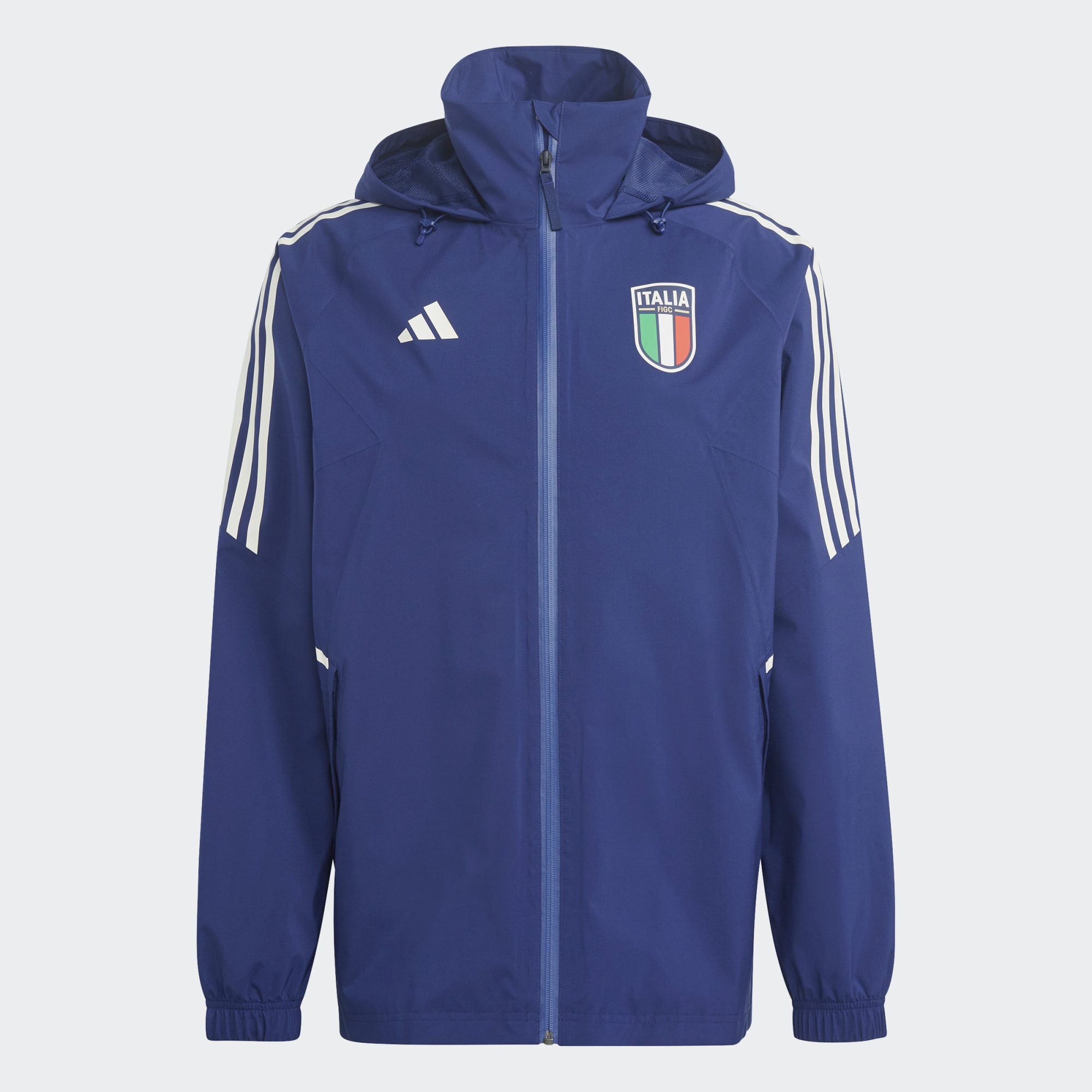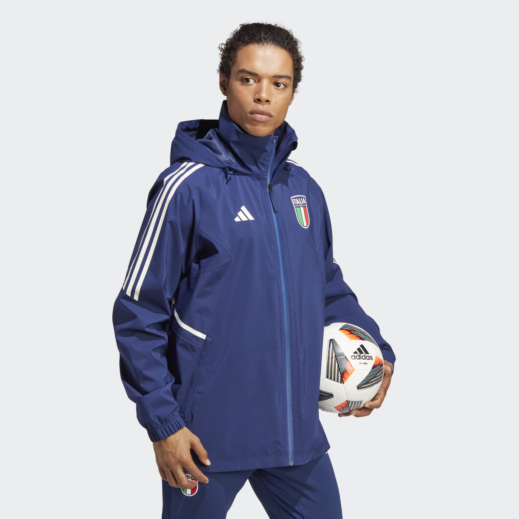The best football players must be ready to perform in every condition. That's why adidas included this Italy Condivo 23 Rain Jacket in Dark Blue as part of Italy's training kit.