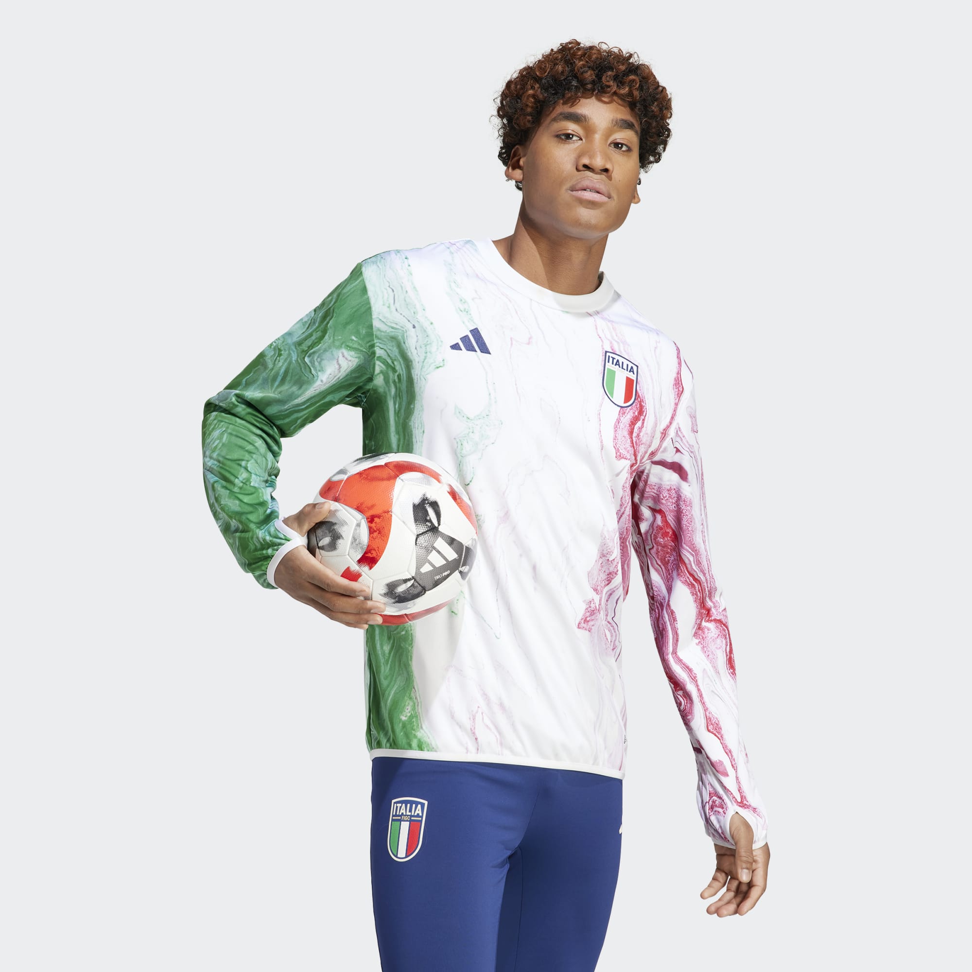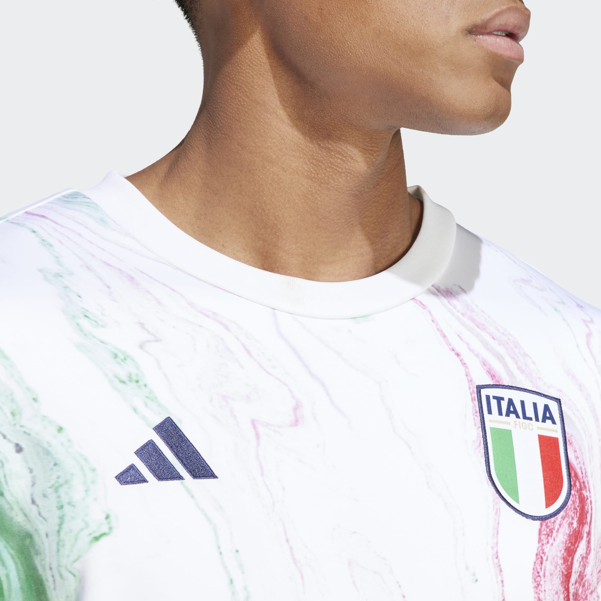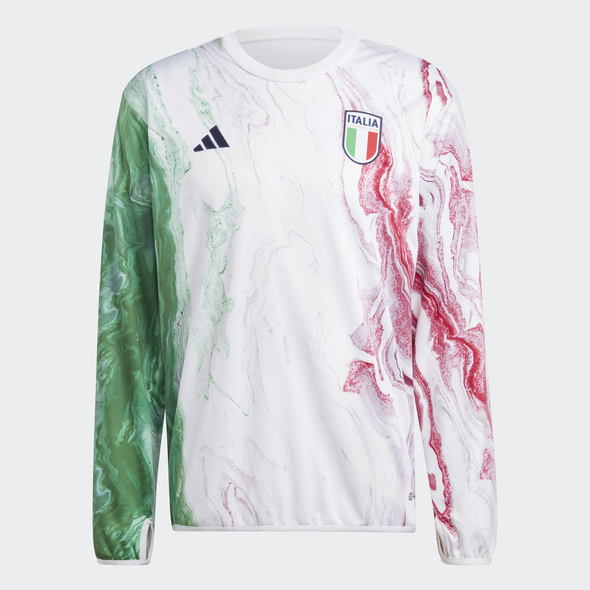 Borrowing the marble-inspired look of the match jerseys, this adidas Italy pre-match warm top in Green/White/Red blends the country's famous tricolour flag colours.